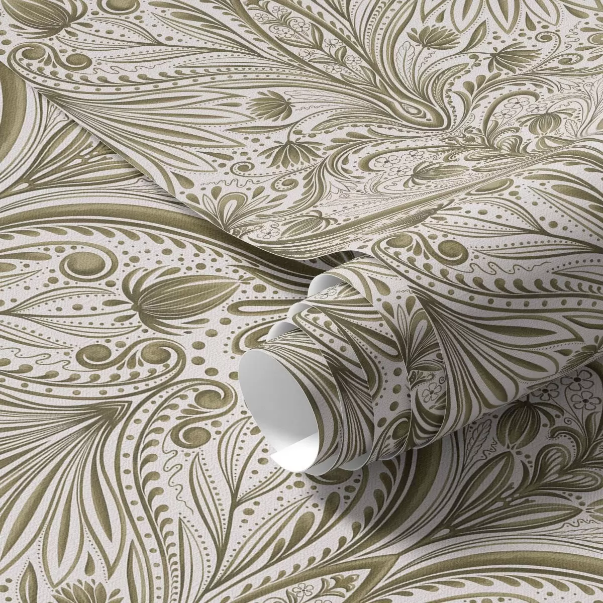 Tapetti Symmetrinen barokkikuvio, jossa on kukka-aiheita Nr. a00436