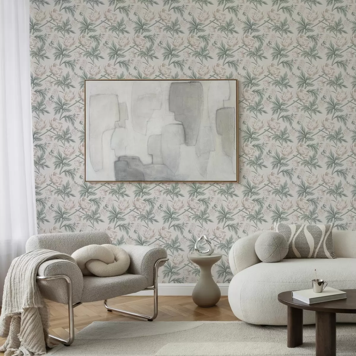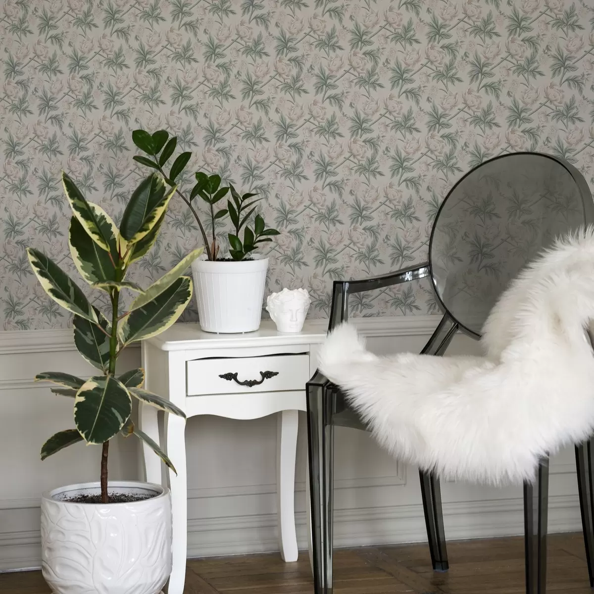 Tapetti Reheviä pioneita vaalean beigen ja vihreän sävyissä beige ja vihreä beige ja vihreä Nr. a00445