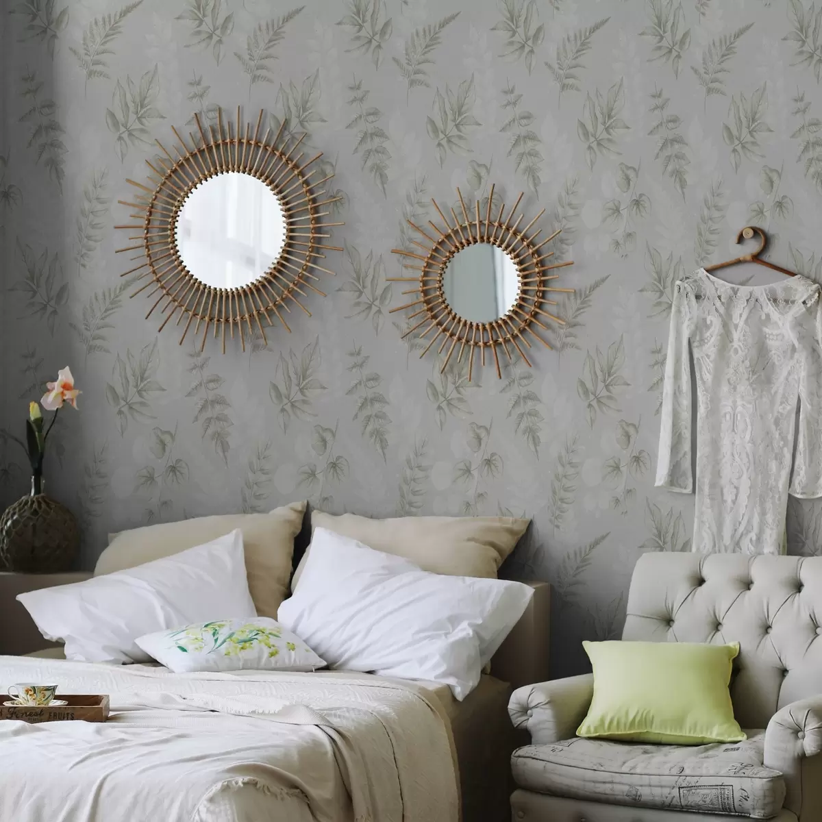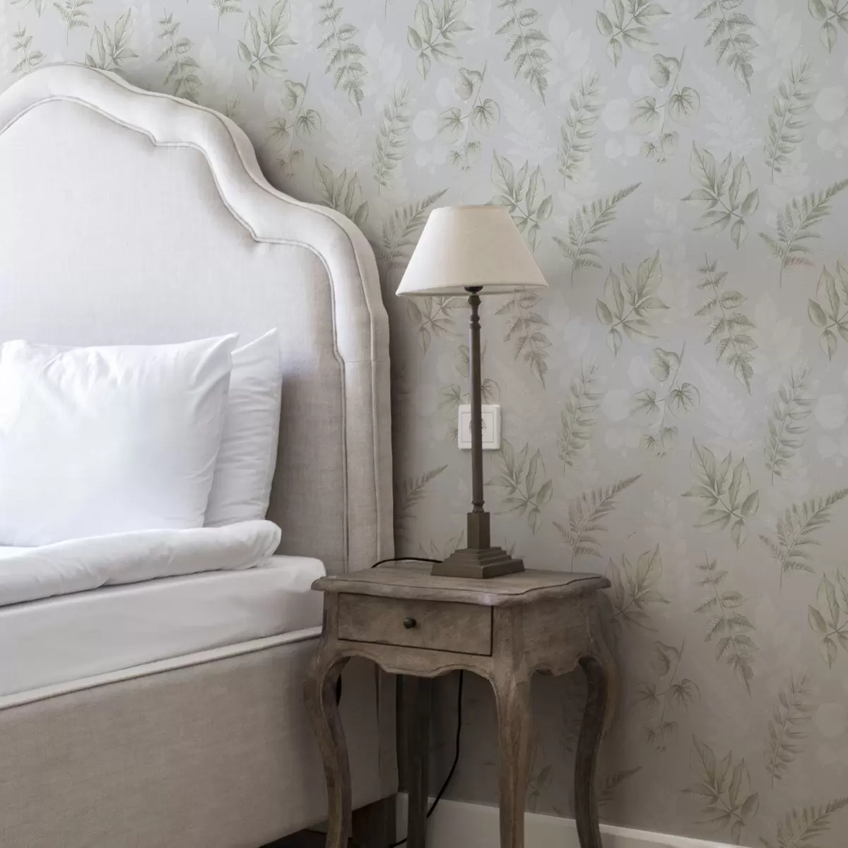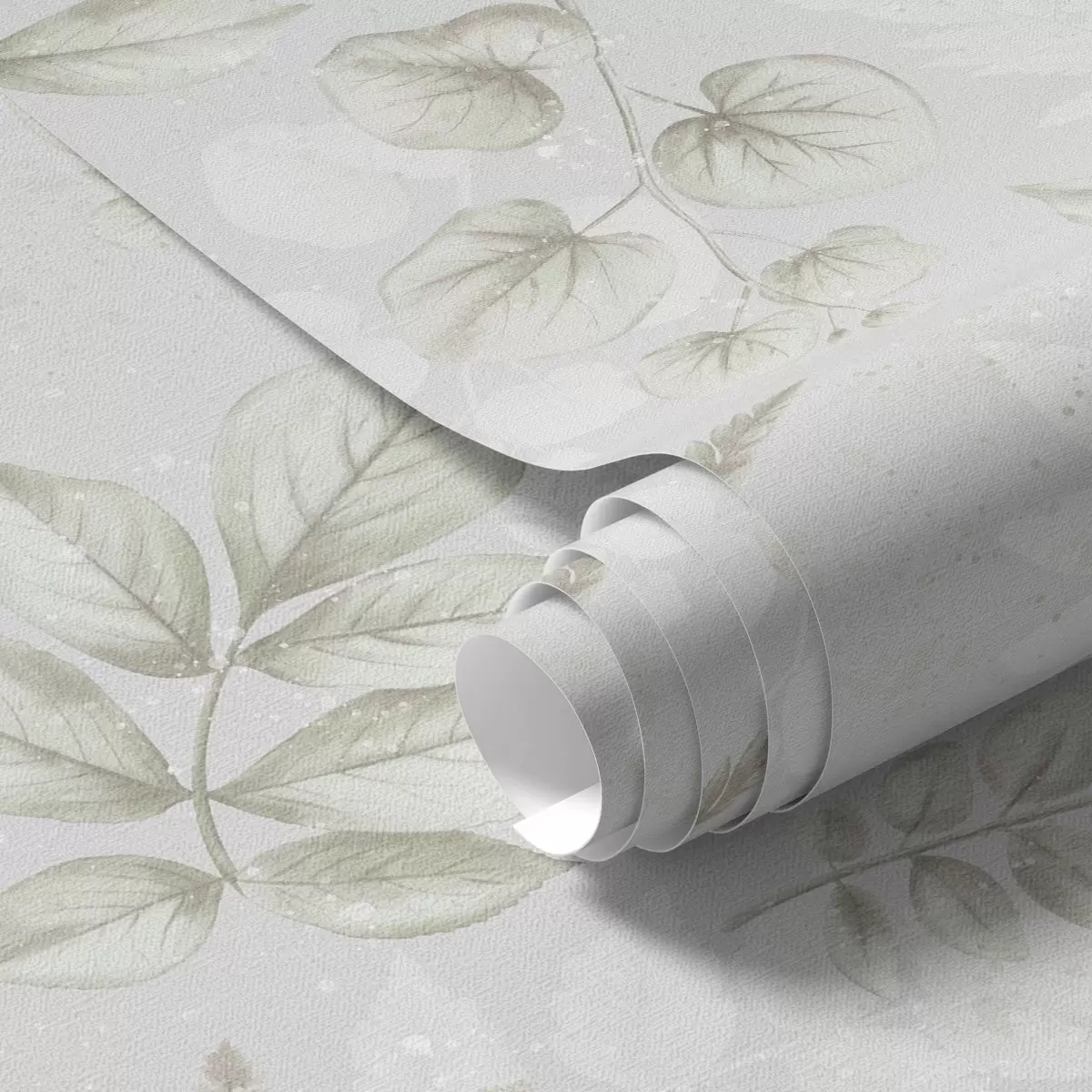 Tapetti Vaalea akvarelli lehdet roiskevaikutus harmaalla pohjalla Nr. a00446