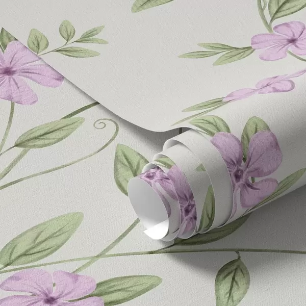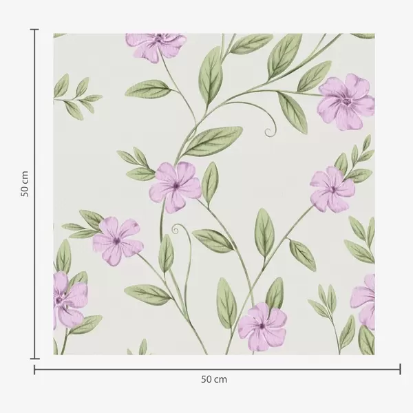 Tapetti Vaaleanpunaisia kukkia ja vihreitä köynnöksiä kermanvärisellä pohjalla Nr. a00453