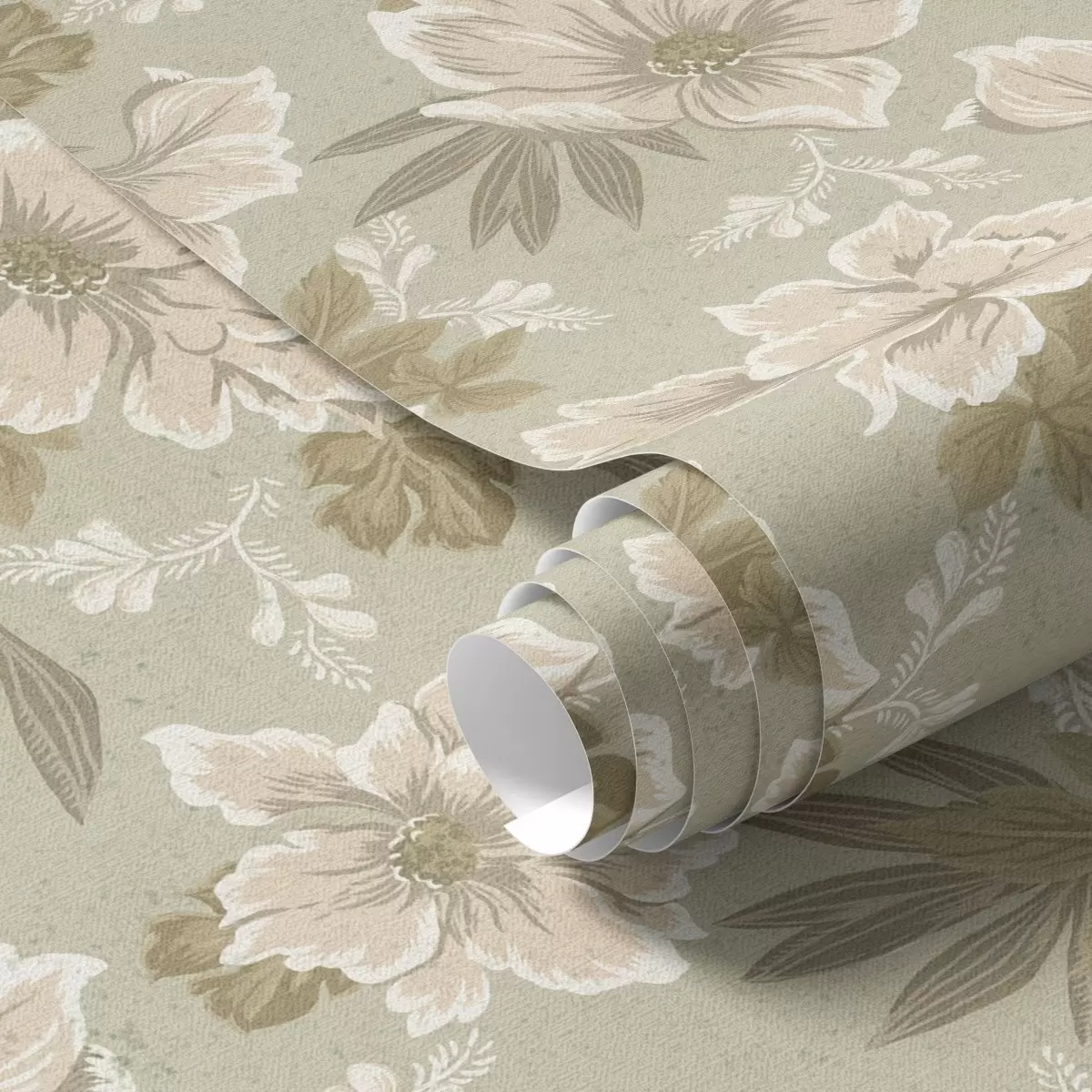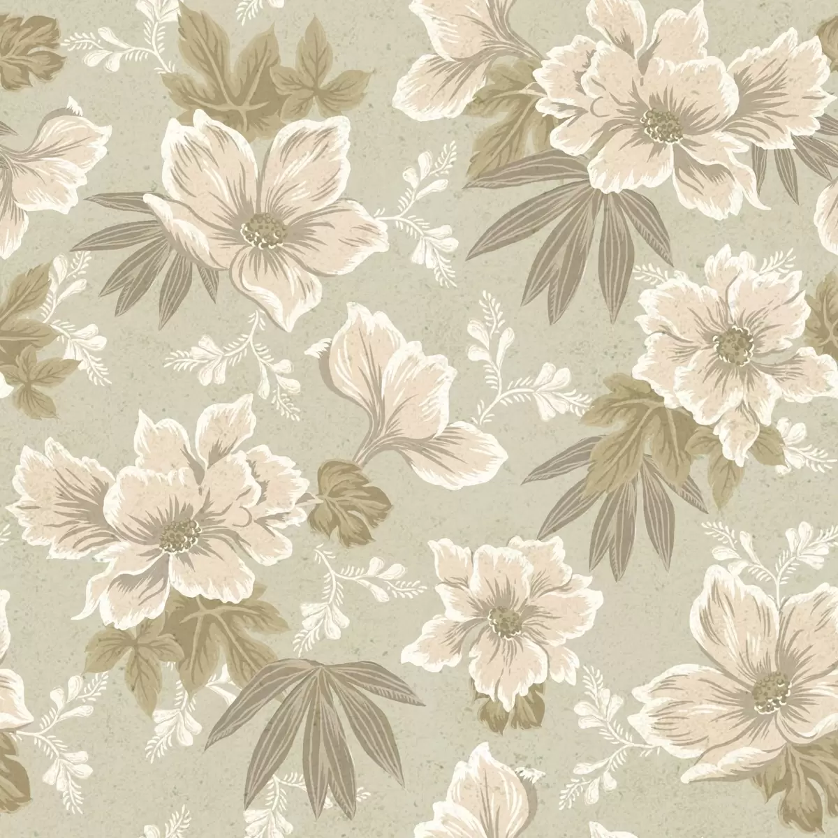 Tapetti Kermanvärisiä kukkia oliivinvihreällä pohjalla Nr. a00462