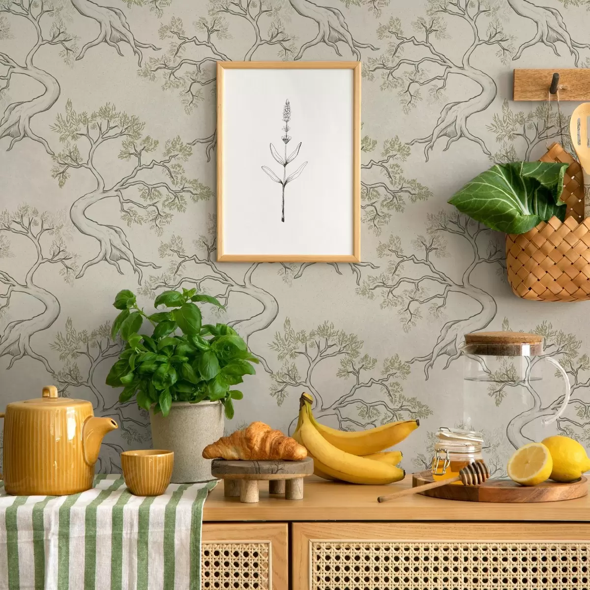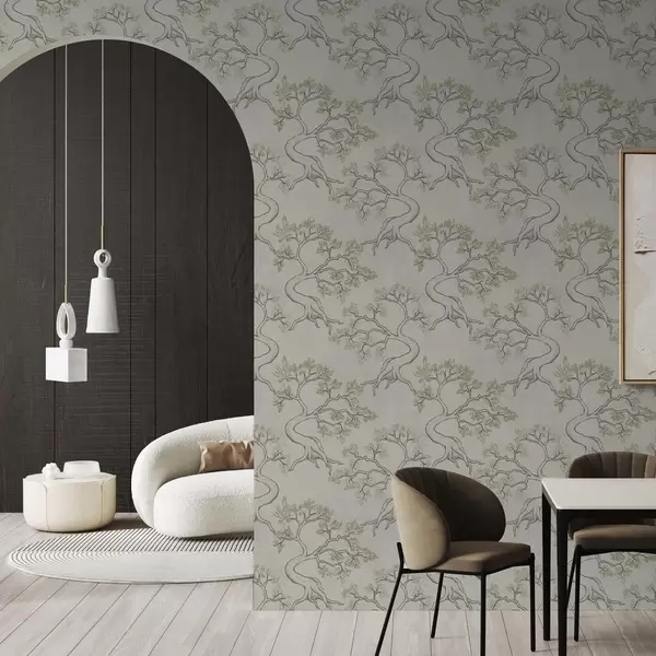 Tapetti Yksiväriset puut, joissa on hienot kaarevat rungot Nr. a00468
