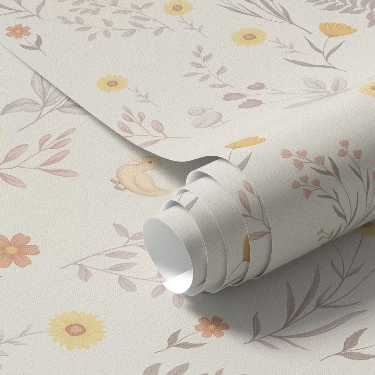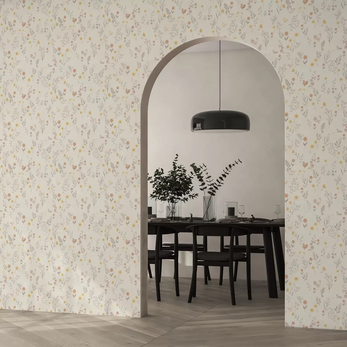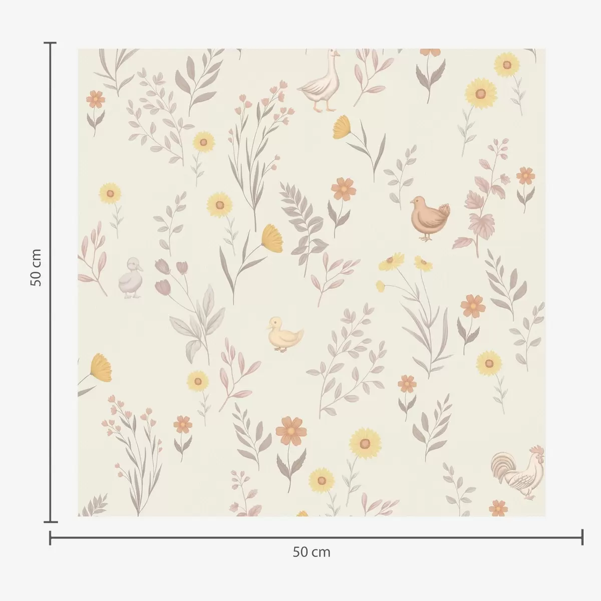 Tapetti Peltokukkia ja kanoja pehmeissä pastellisävyissä sävyissä Nr. a00478