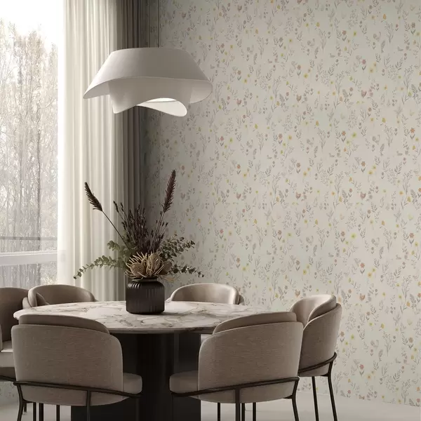 Tapetti Peltokukkia ja kanoja pehmeissä pastellisävyissä sävyissä Nr. a00478