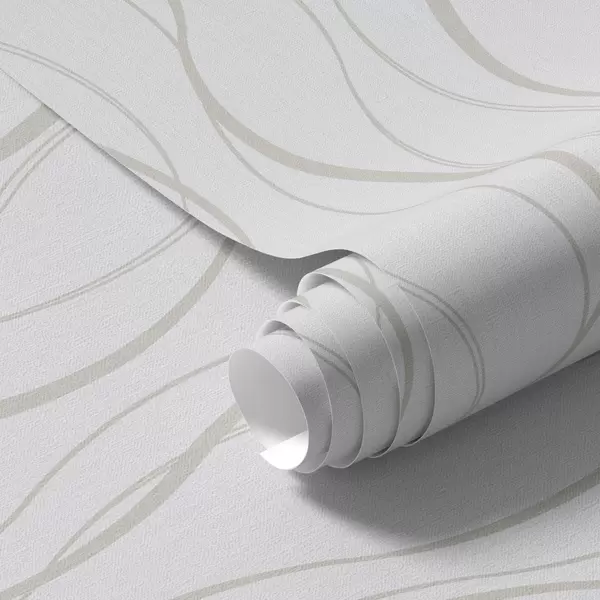 Tapetti Abstrakti aaltoileva beige viivoja valkoisella taustalla Nr. a00480