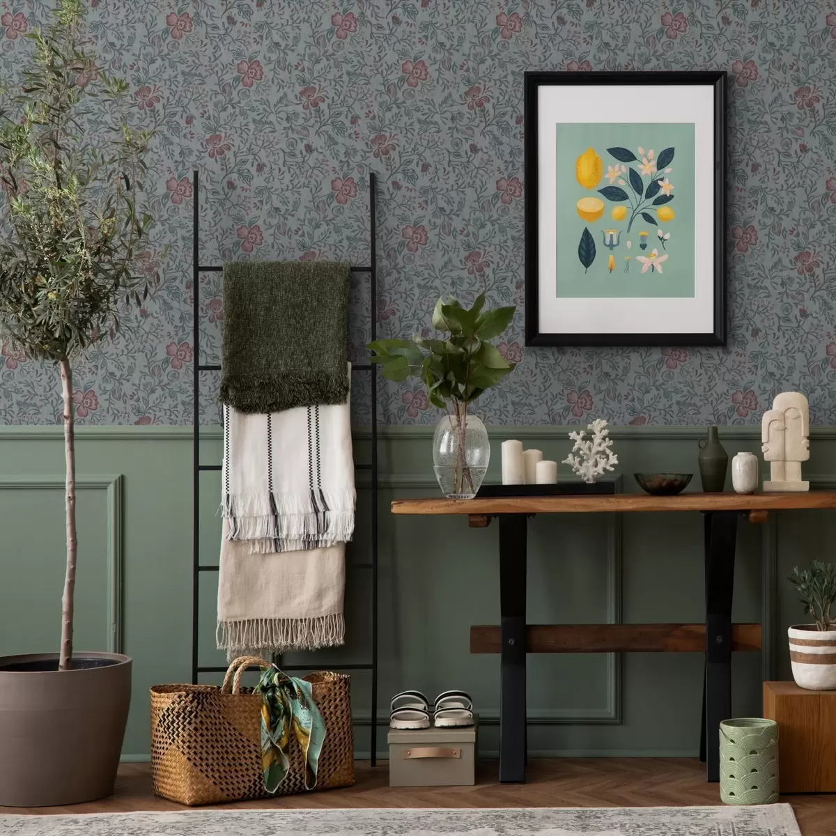 Tapetti Pastellivärit kukat harmaansinisellä pohjalla Nr. a00499