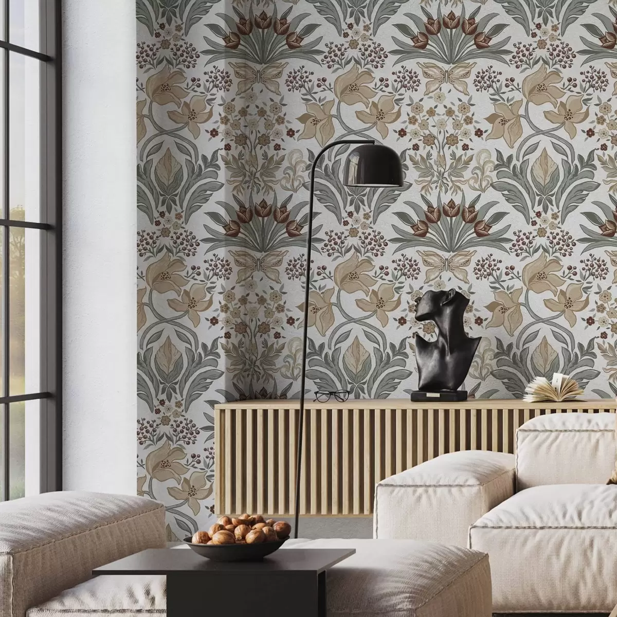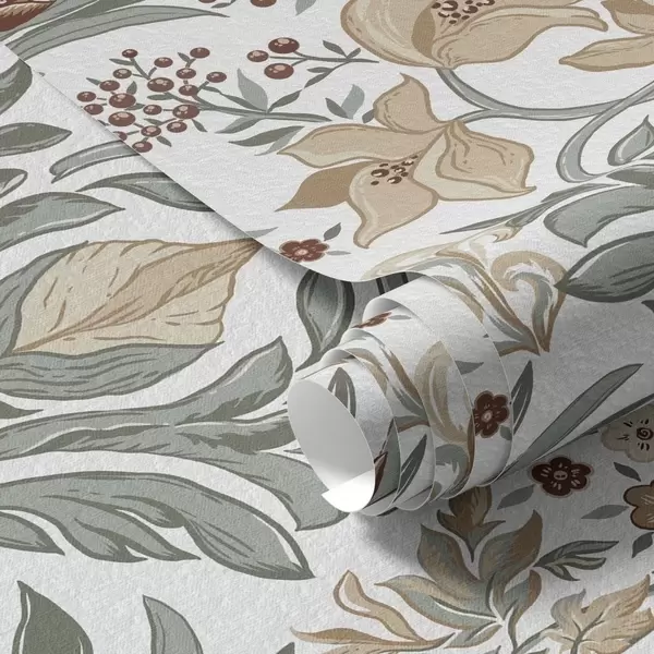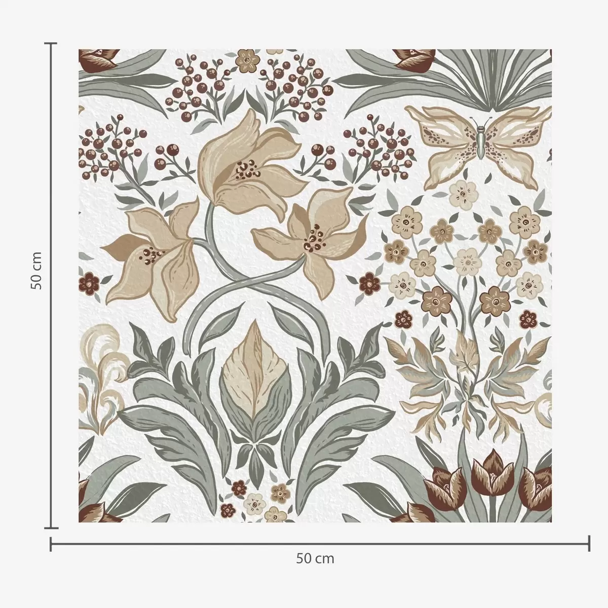 Tapetti Koristeelliset liljat ja perhonen valkoisella taustalla Nr. a00500v1