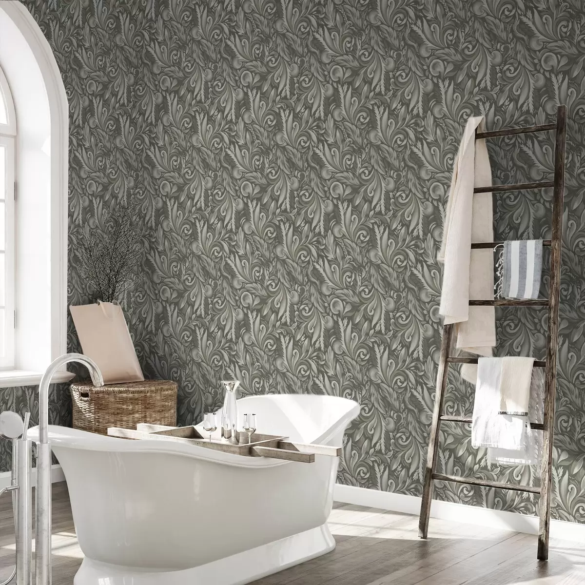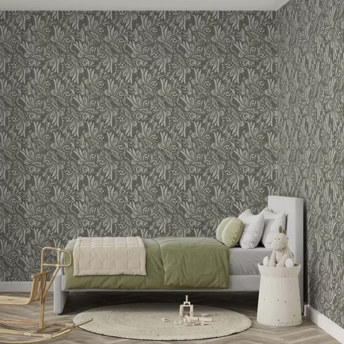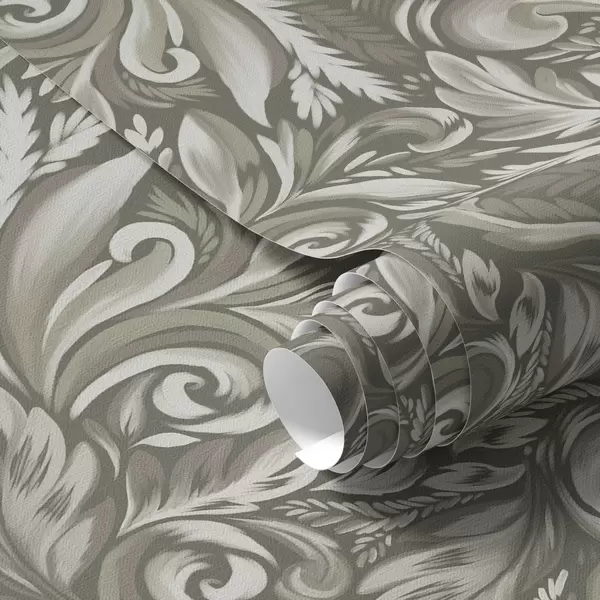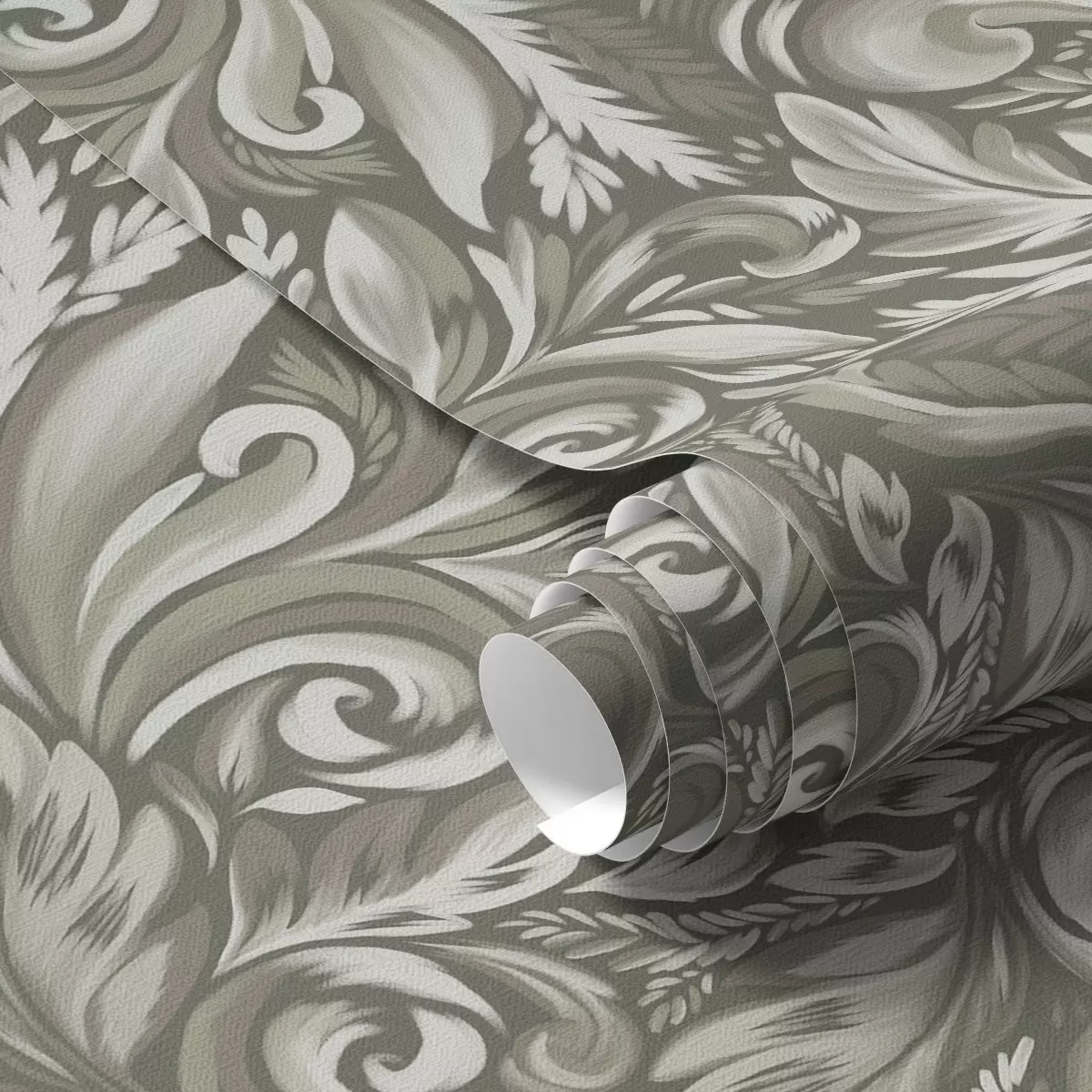 Tapetti Akantti-koristeet oliivi-beigen sävyissä Nr. a00501