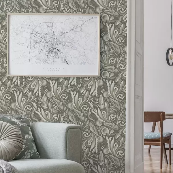 Tapetti Akantti-koristeet oliivi-beigen sävyissä Nr. a00501