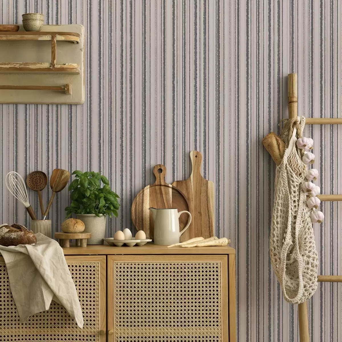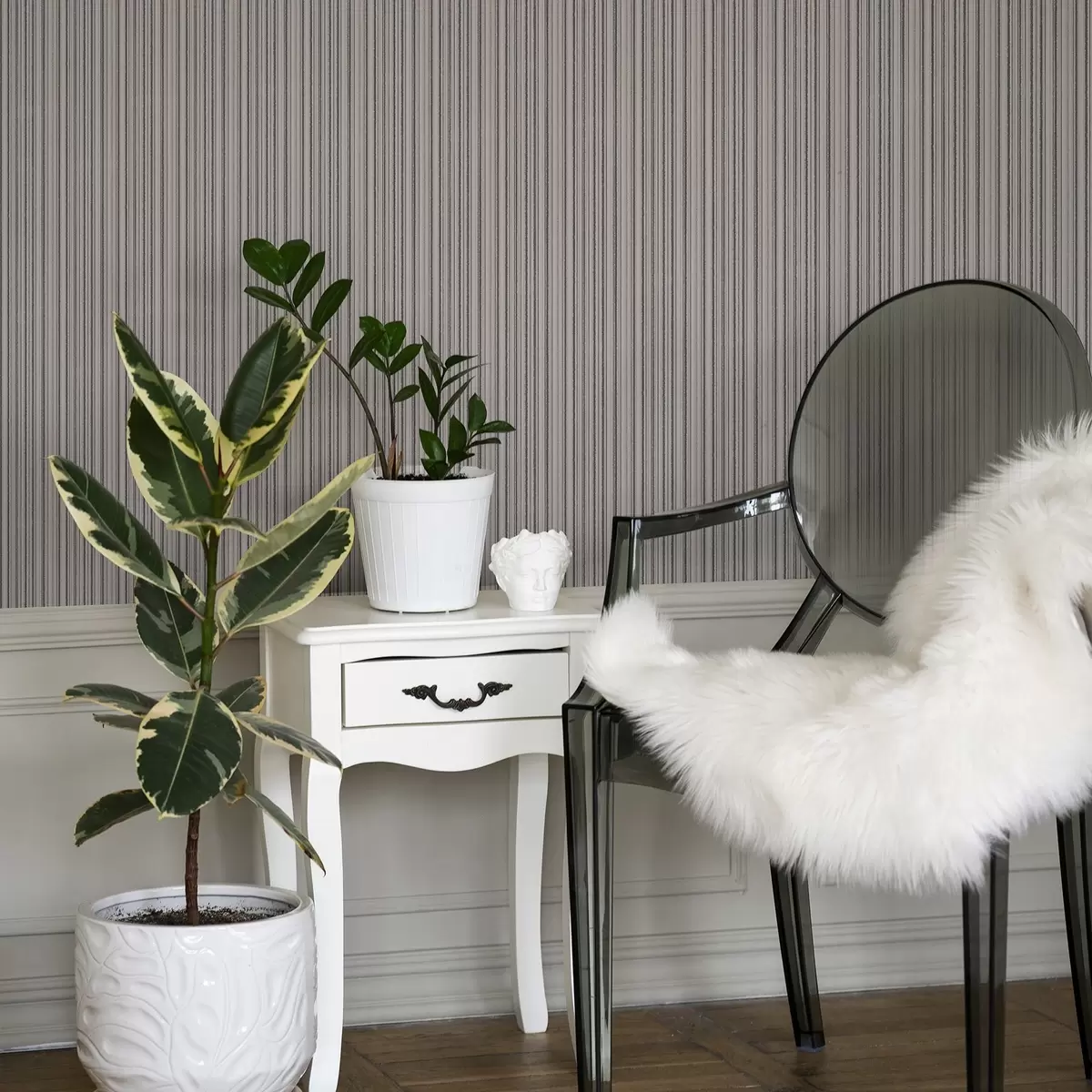 Tapetti Herkät raidat harmaan ja vaaleanpunaisen sävyissä Nr. a00509