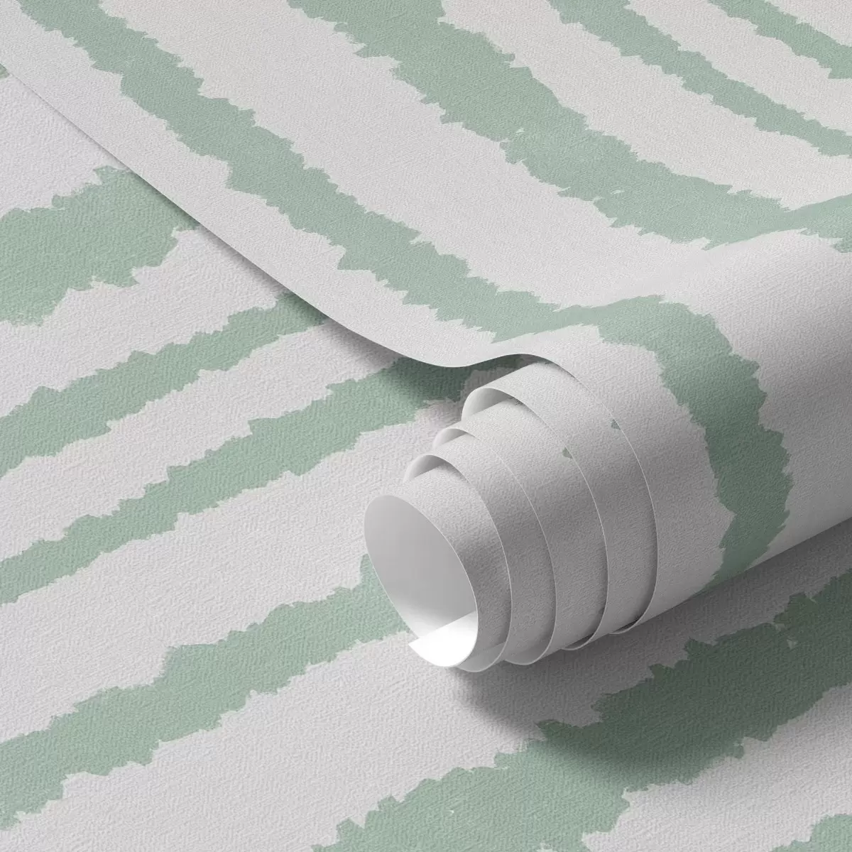 Tapetti Epätasaiset mintunväriset raidat valkoisella pohjalla Nr. a00510
