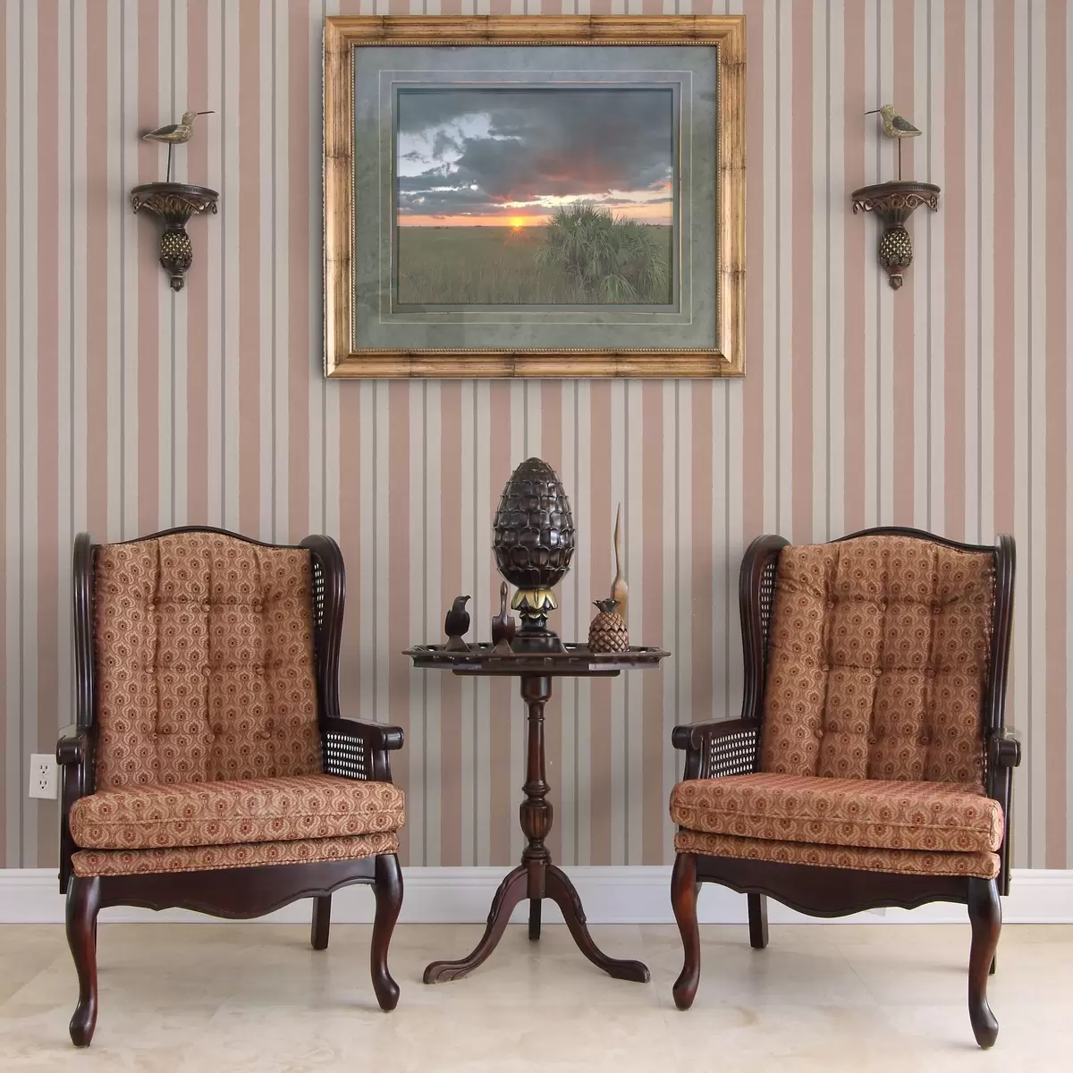 Tapetti Terrakotta-beige leveät raidat, joissa on harmahtava aksentti Nr. a00513