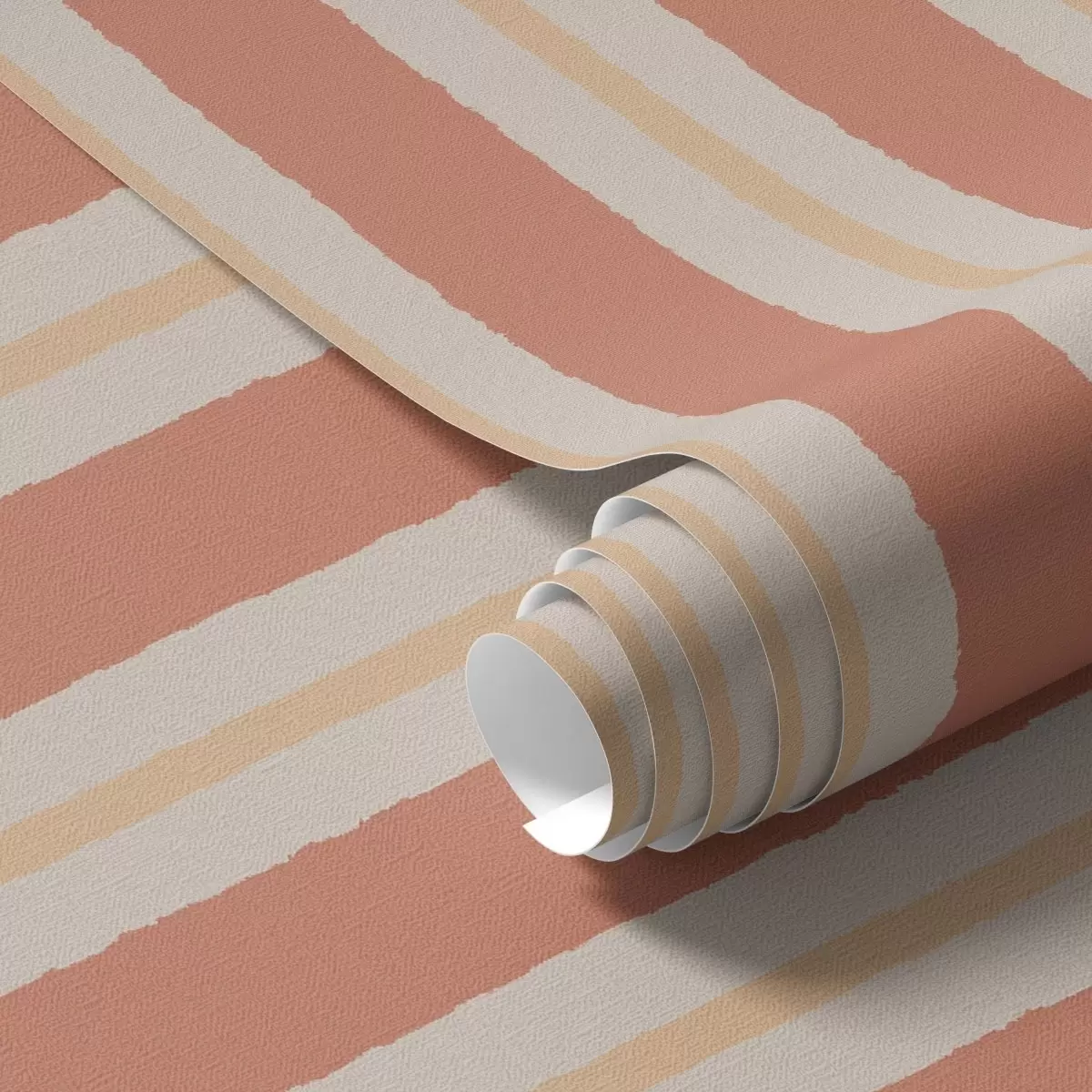 Tapetti Kirkkaat terrakottaiset raidat, joissa on beigejä aksentteja Nr. a00515