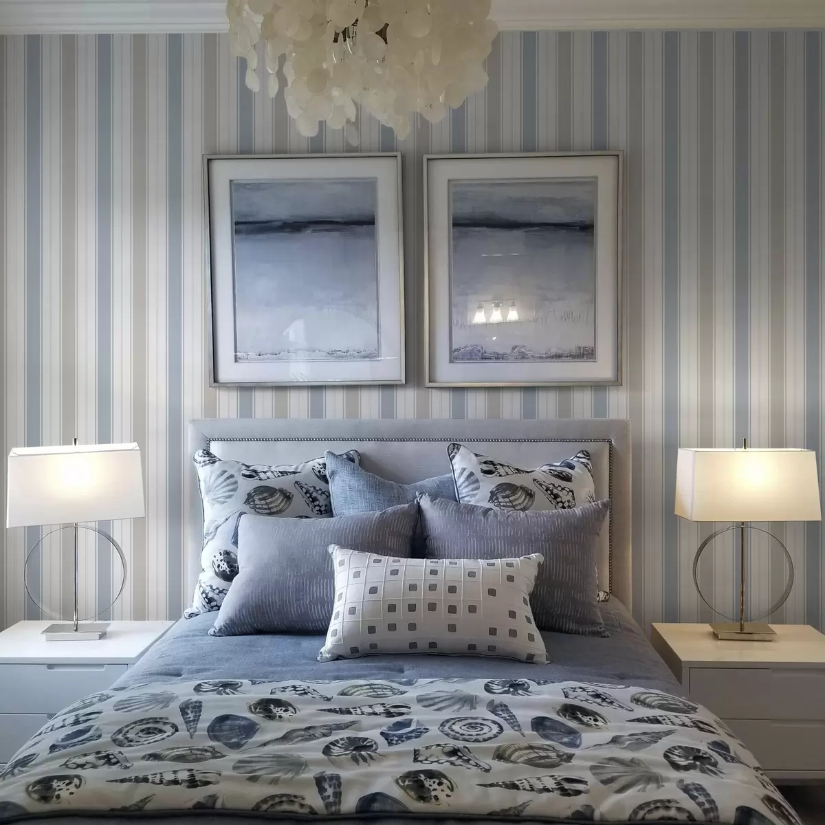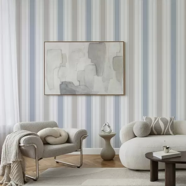 Tapetti Selkeät raidat harmaan ja sinisen sävyissä, joissa on kontrasteja Nr. a00517v2