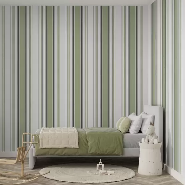 Tapetti Valkoinen tausta, jossa on sekoitus vihreitä ja mustia raitoja Nr. a00520