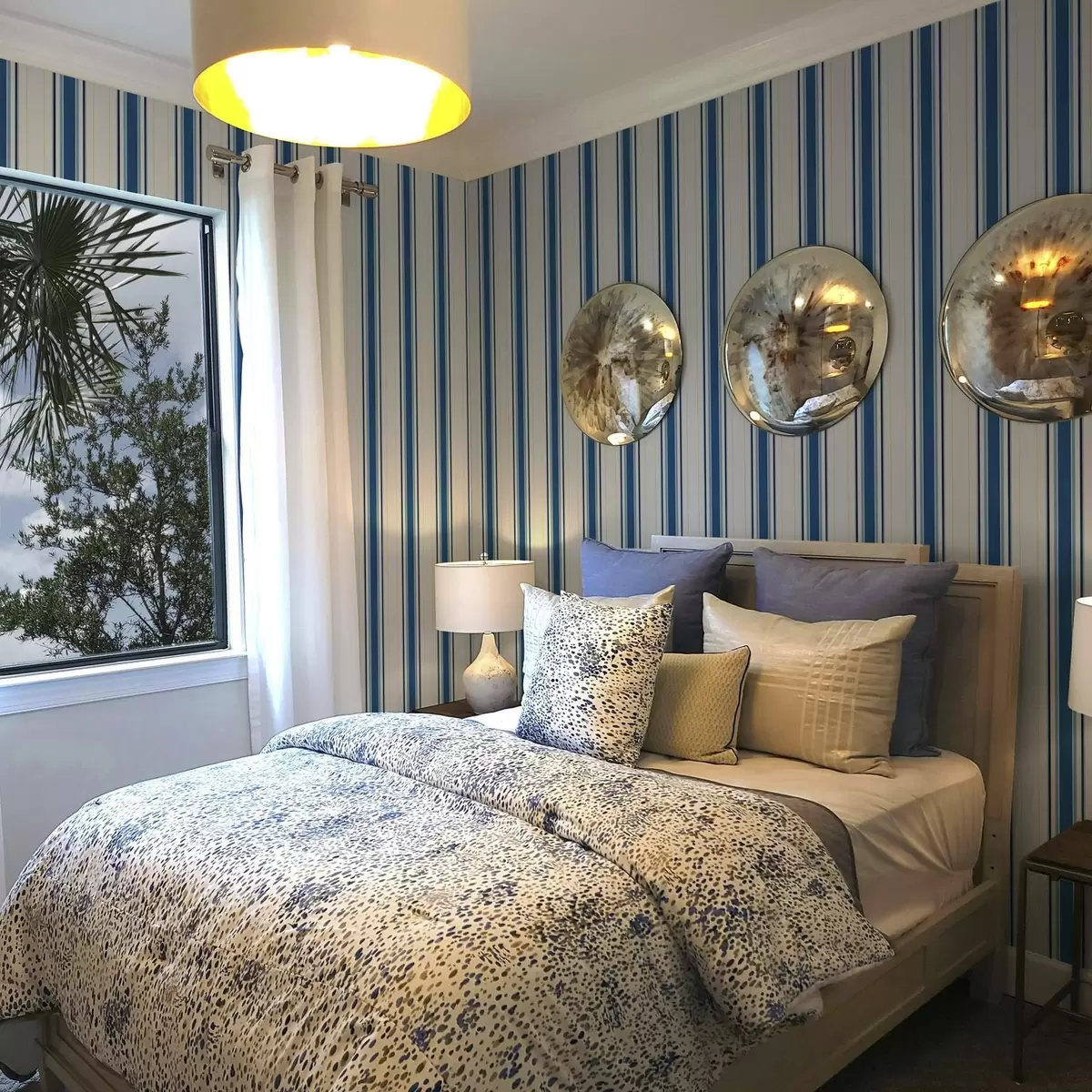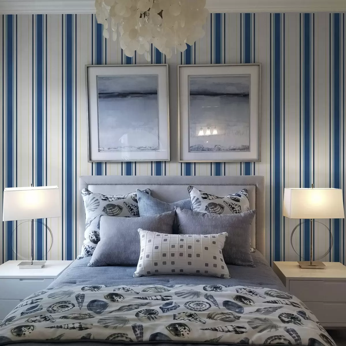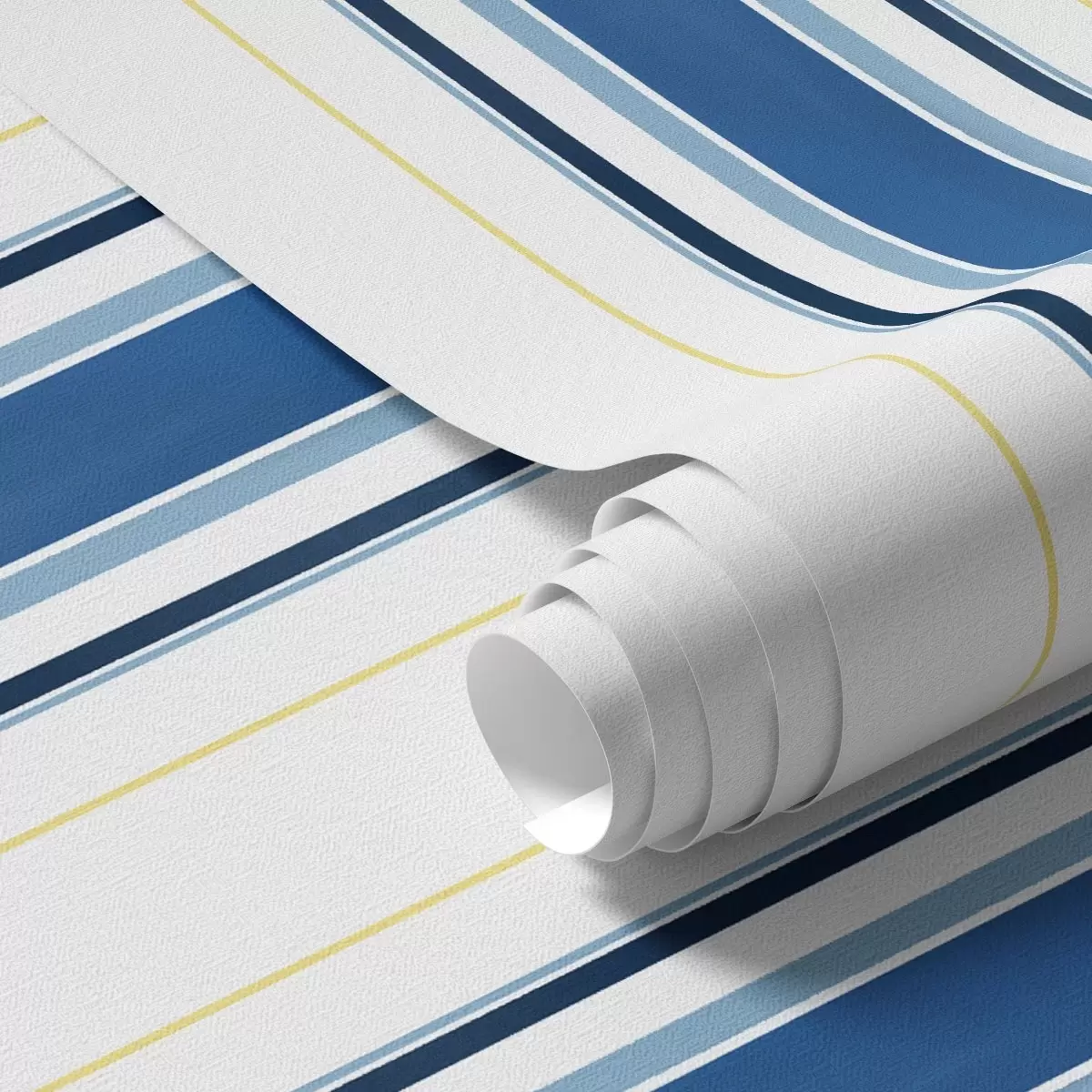 Tapetti Leveät siniset raidat, joissa on ohuet keltaiset viivat Nr. a00522