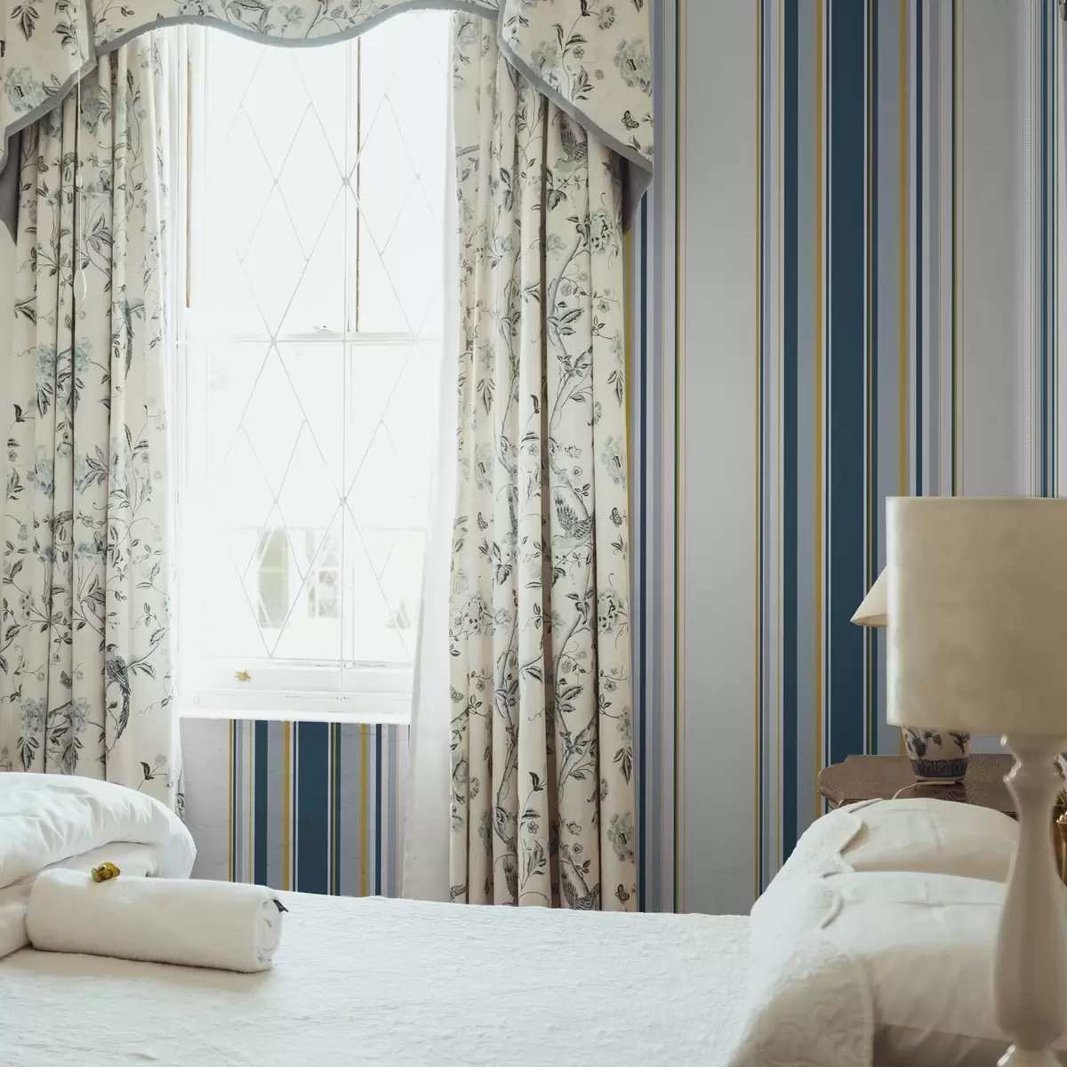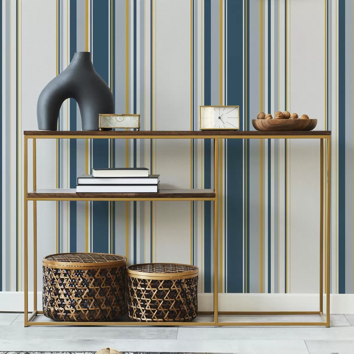 Tapetti Tiheä sinisten ja keltaisten pystyraitojen kuvio Nr. a00524