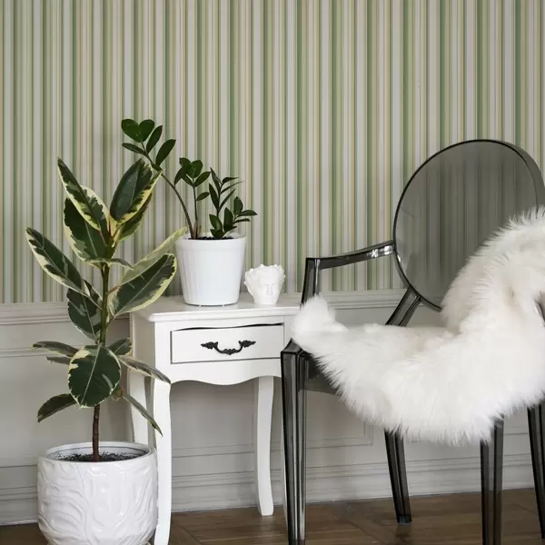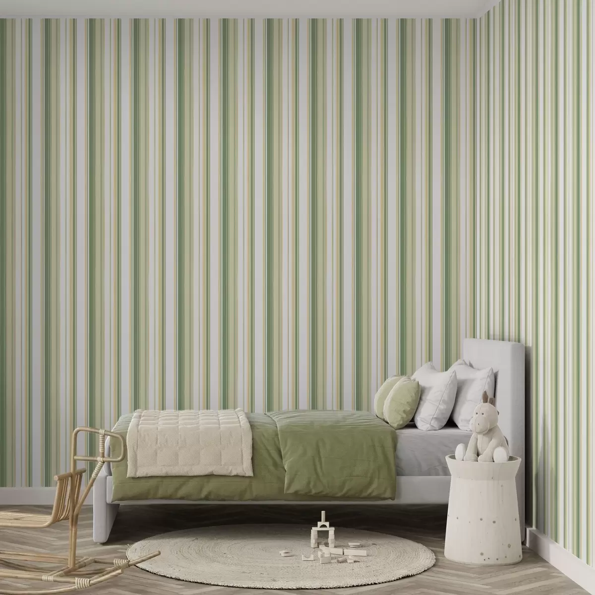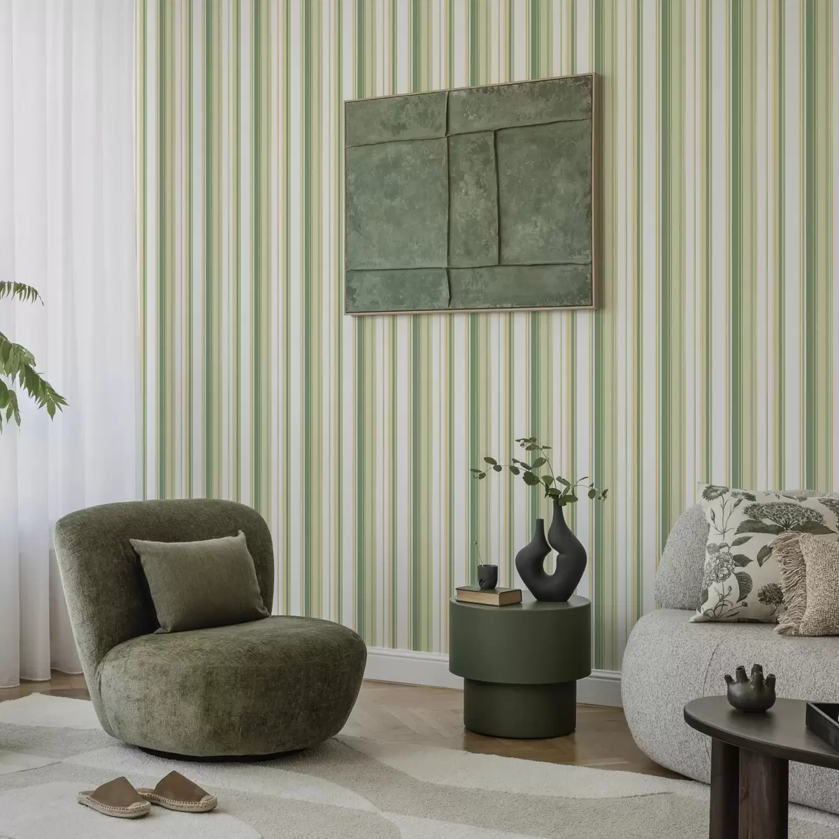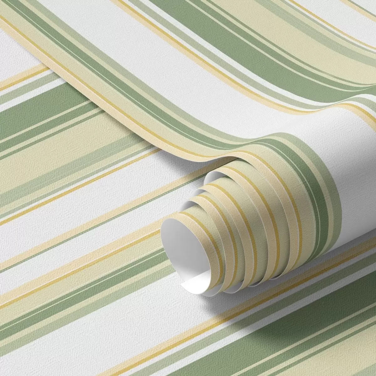 Tapetti Vihreät ja beiget raidat, joissa on keltaiset korostusviivat Nr. a00531