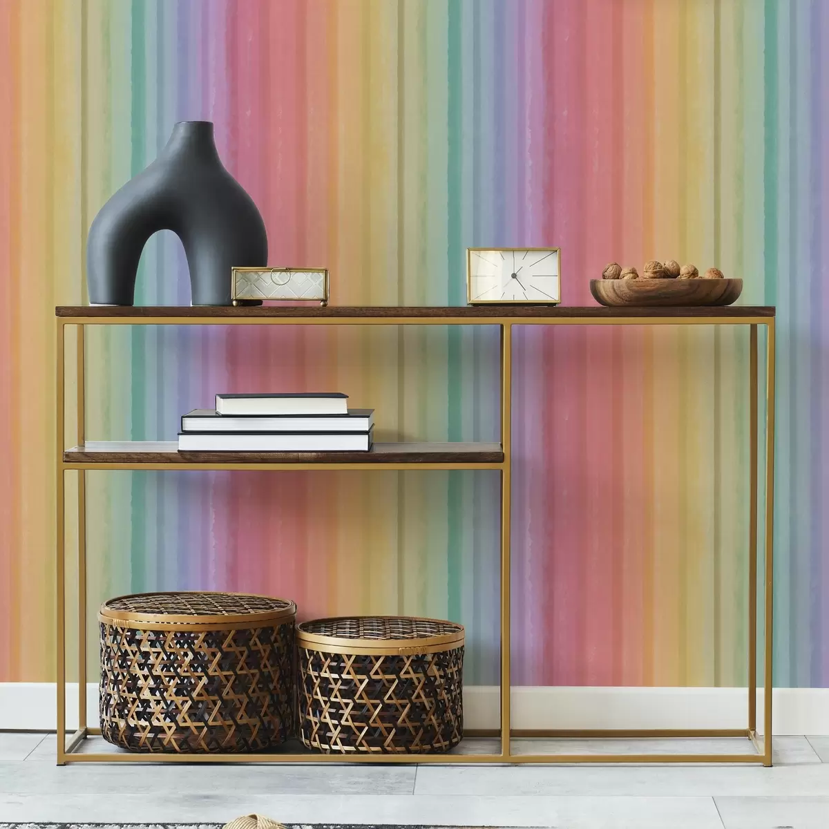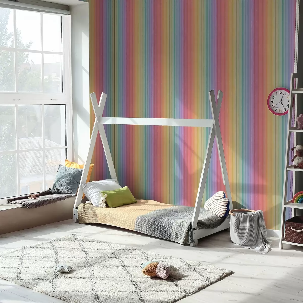Tapetti Sateenkaariraidat, joissa on ilmeikkäitä väriaksentteja Nr. a00553