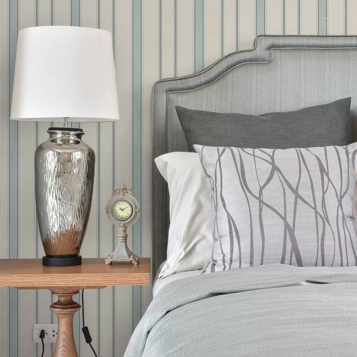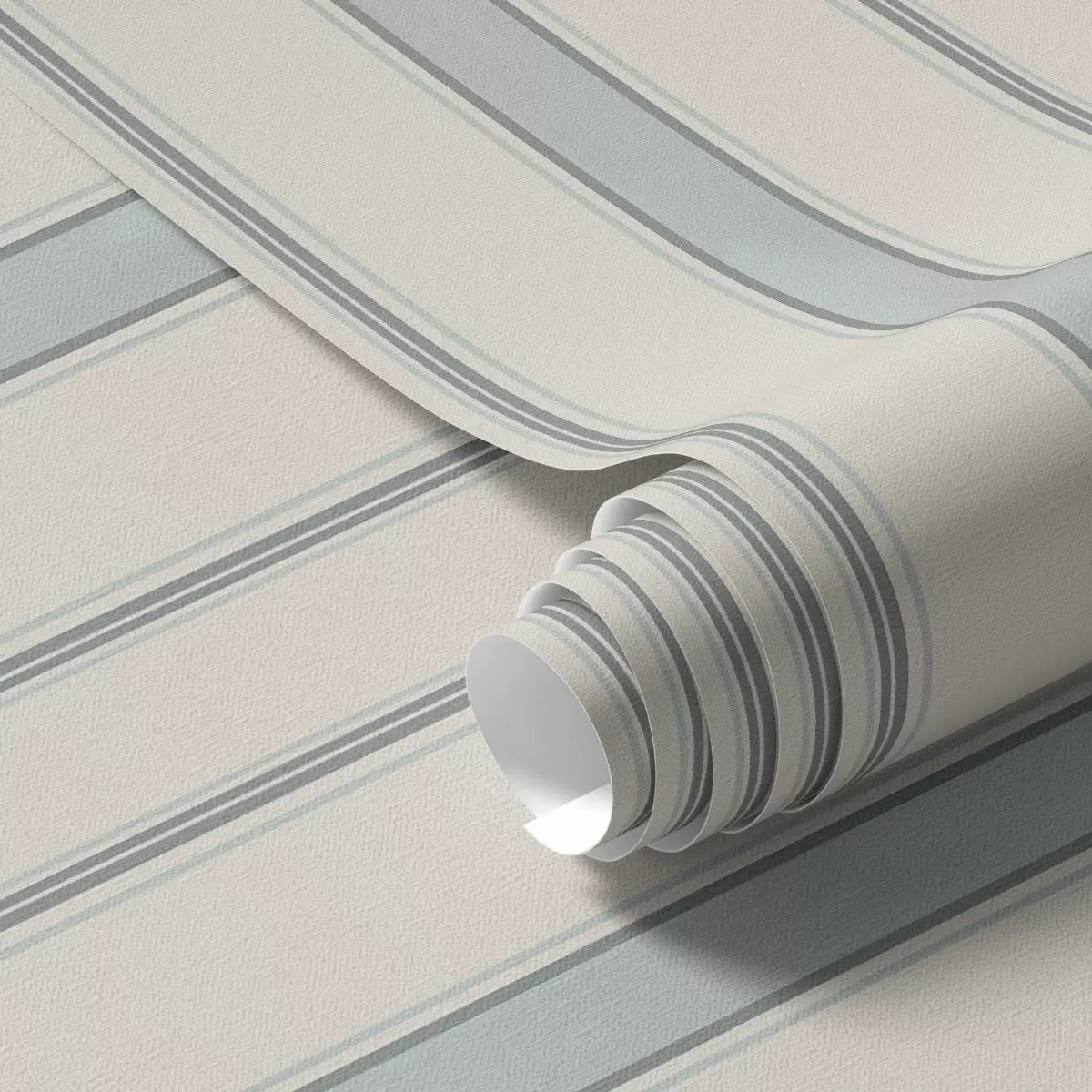 Tapetti Sinisiä ja harmaita raitoja kermanvärisellä pohjalla Nr. a00555