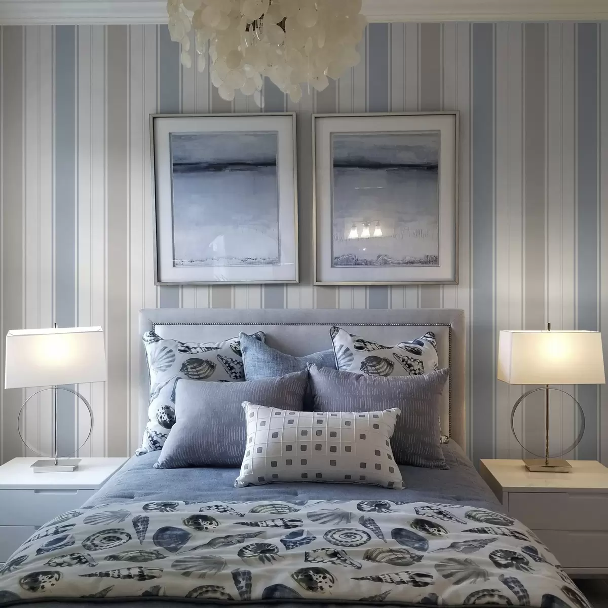 Tapetti Harmaat ja siniset leveät raidat valkoisella pohjalla Nr. a00558