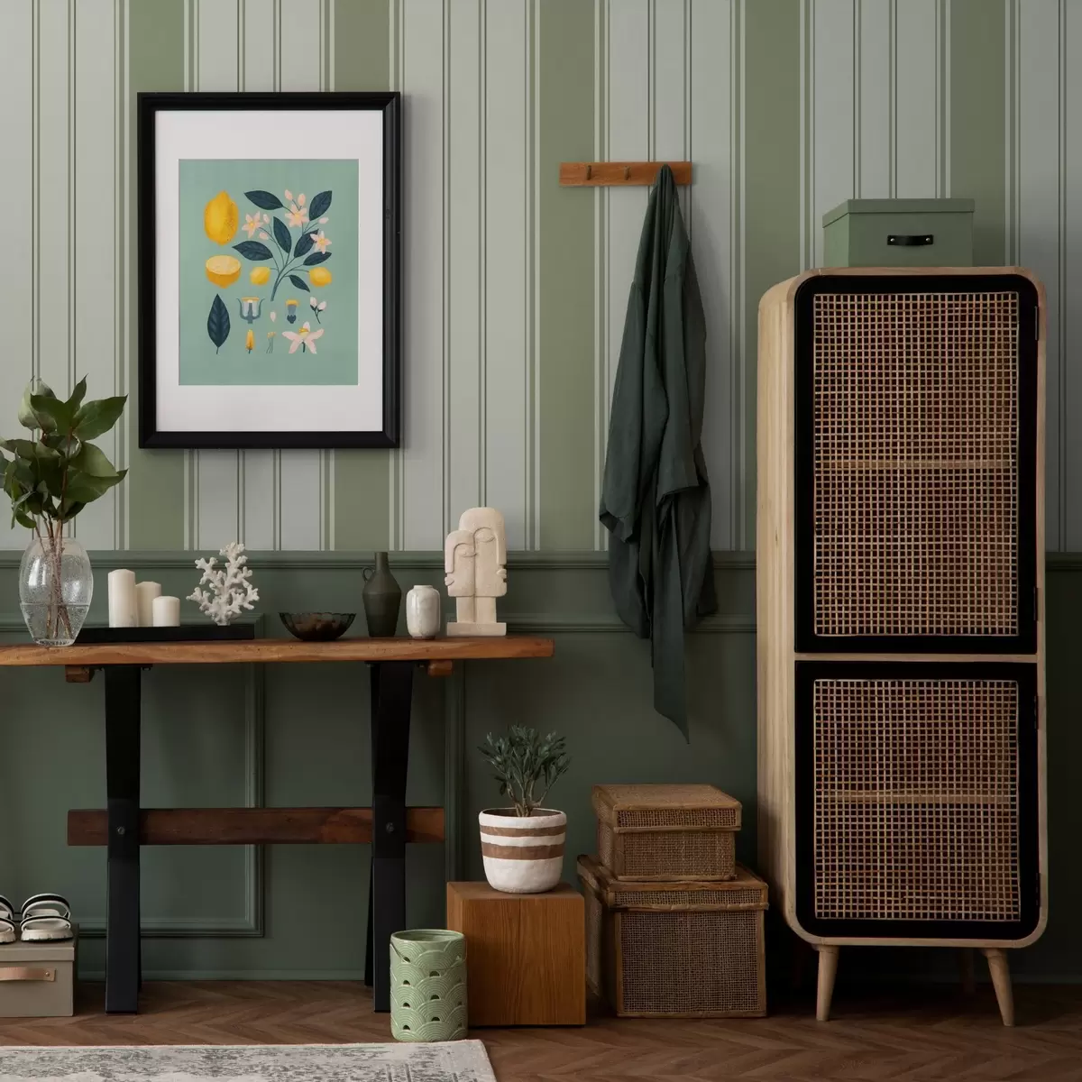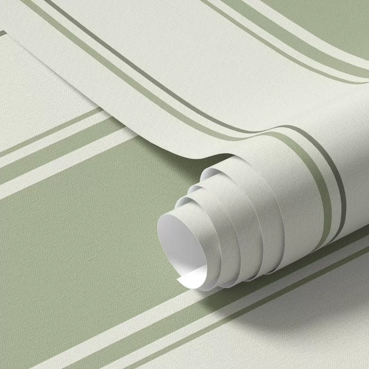 Tapetti Kermanvärinen tausta, jossa on leveät vaaleanvihreät raidat Nr. a00561