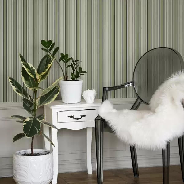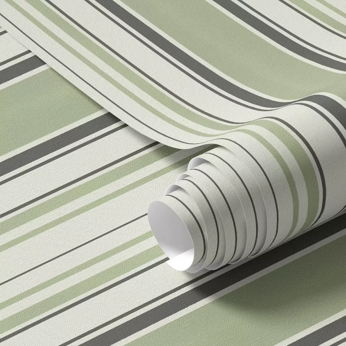 Tapetti Kermanvärinen tausta, jossa on sekoitus vihreitä ja mustia raitoja Nr. a00563