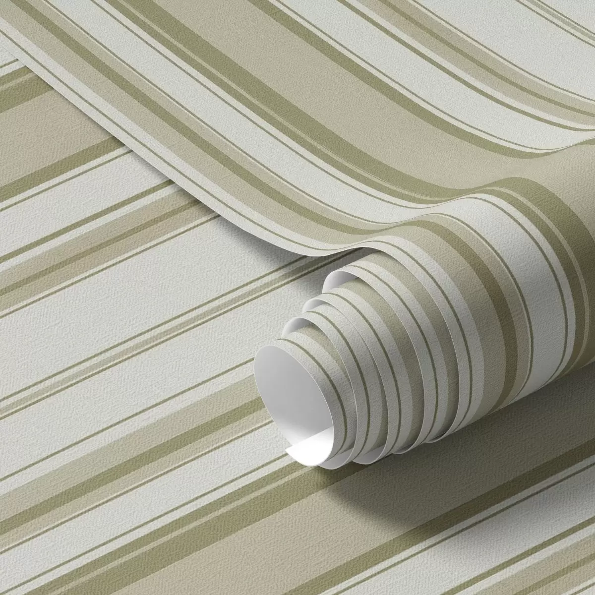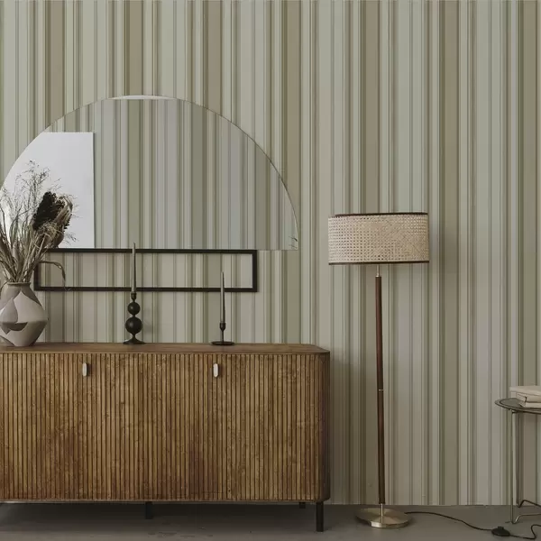 Tapetti Kermanvärinen tausta, jossa harmaa-beige pystysuorat raidat Nr. a00564