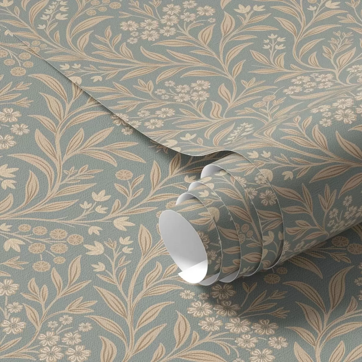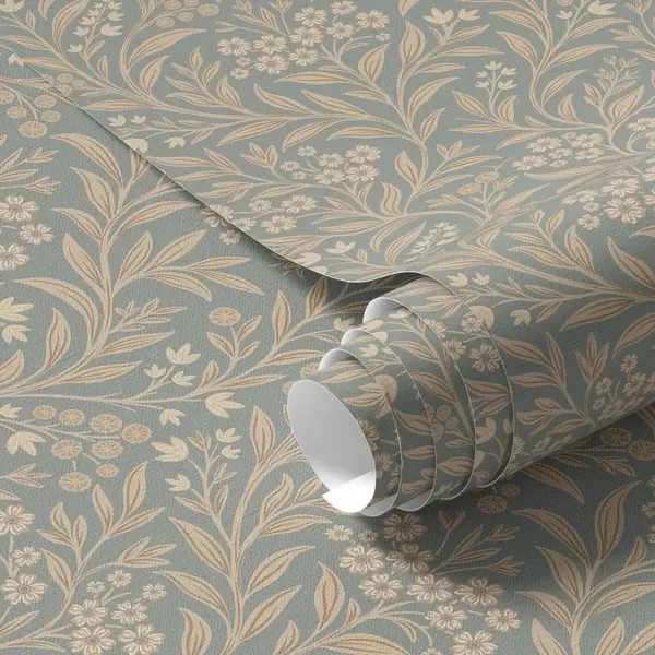 Tapetti Morris-tyyli: beige oksat harmaavihreällä taustalla Nr. a00569