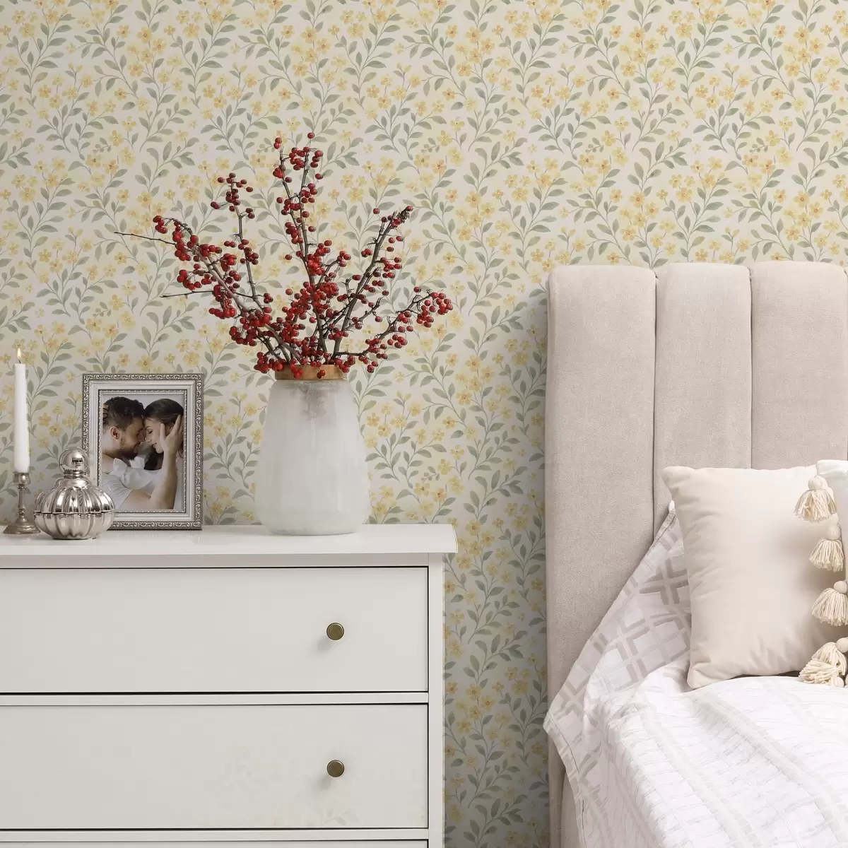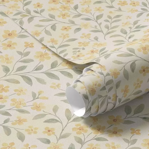 Tapetti Vesivärillä maalattuja keltaisia kukkia vaalealla taustalla Nr. a00570