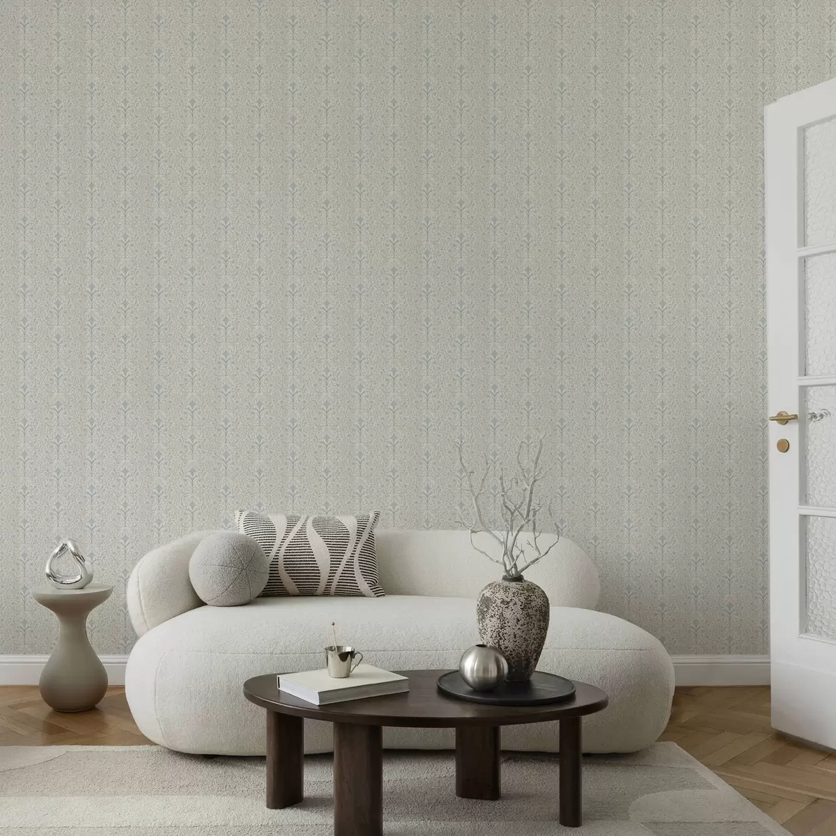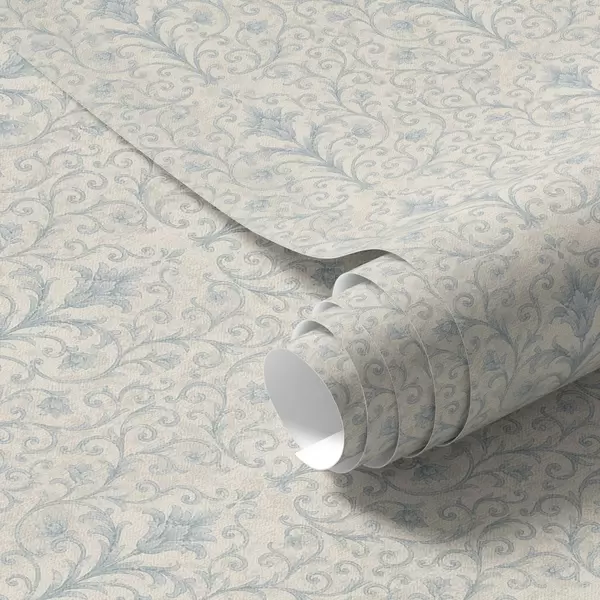 Tapetti Sininen damaski, jossa on käärmeitä kermanvärisellä taustalla Nr. a00578