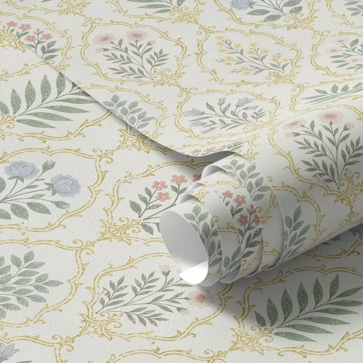 Tapetti Kasvitieteelliset medaljonit ristikossa, pastellisävyissä Nr. a00579