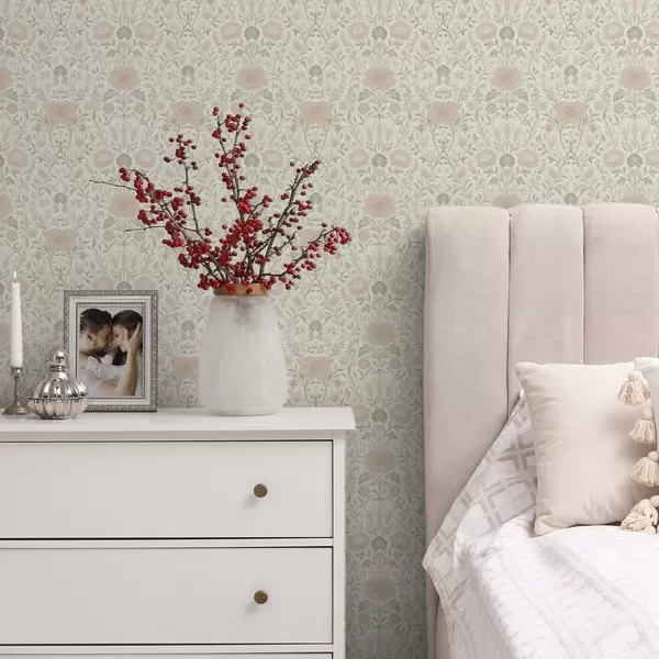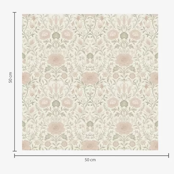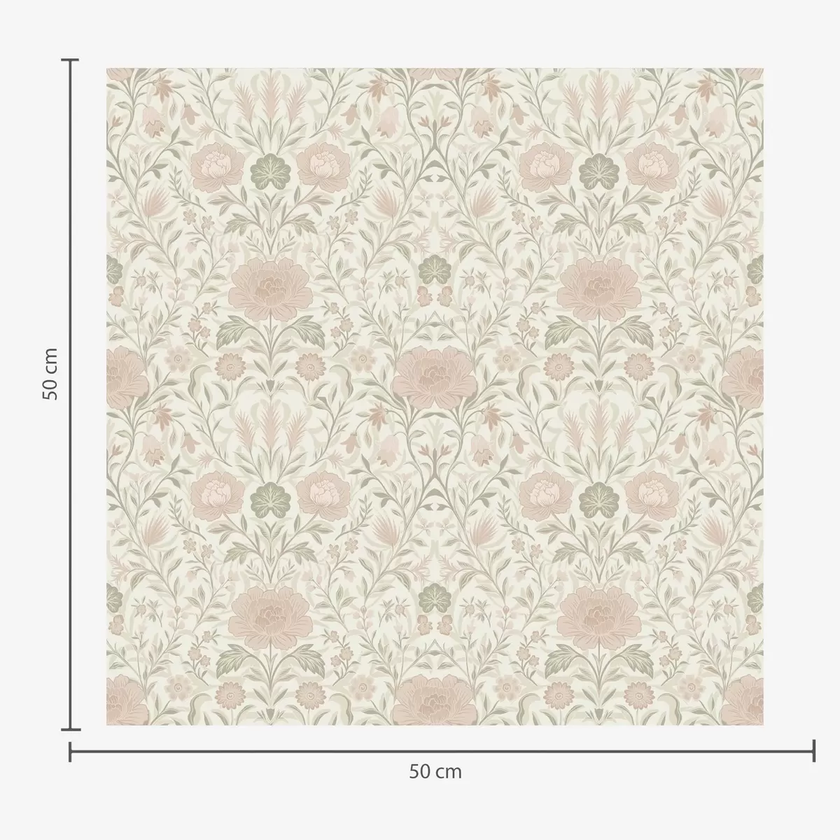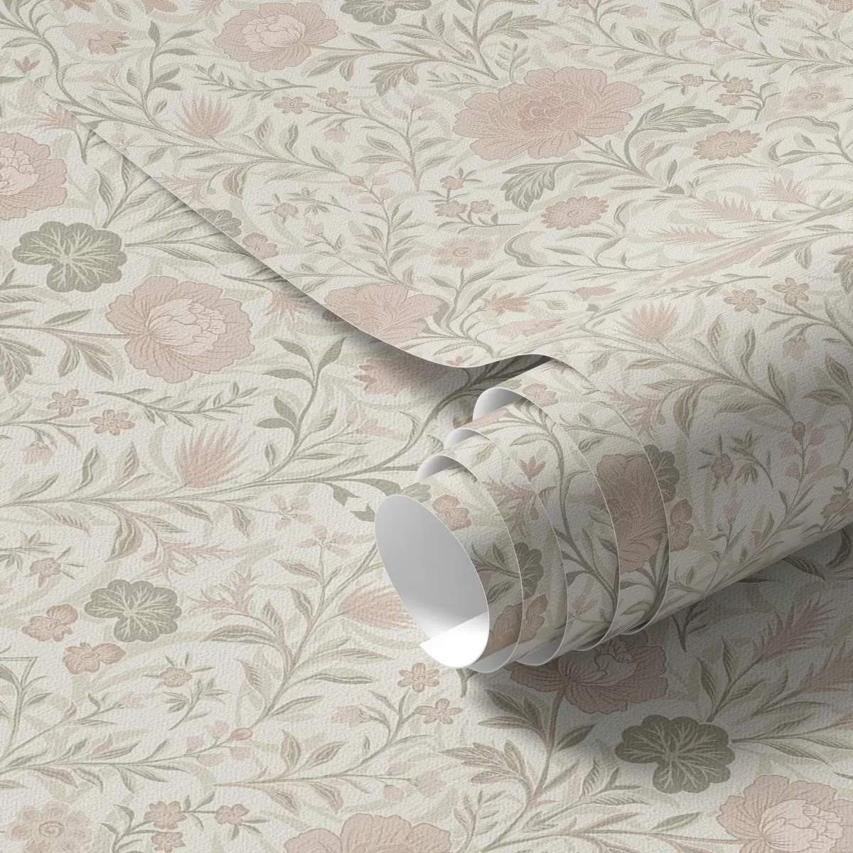 Tapetti Morris-tyyli: pionit ja ruoho pehmeissä beige-vihreissä sävyissä Nr. a00581
