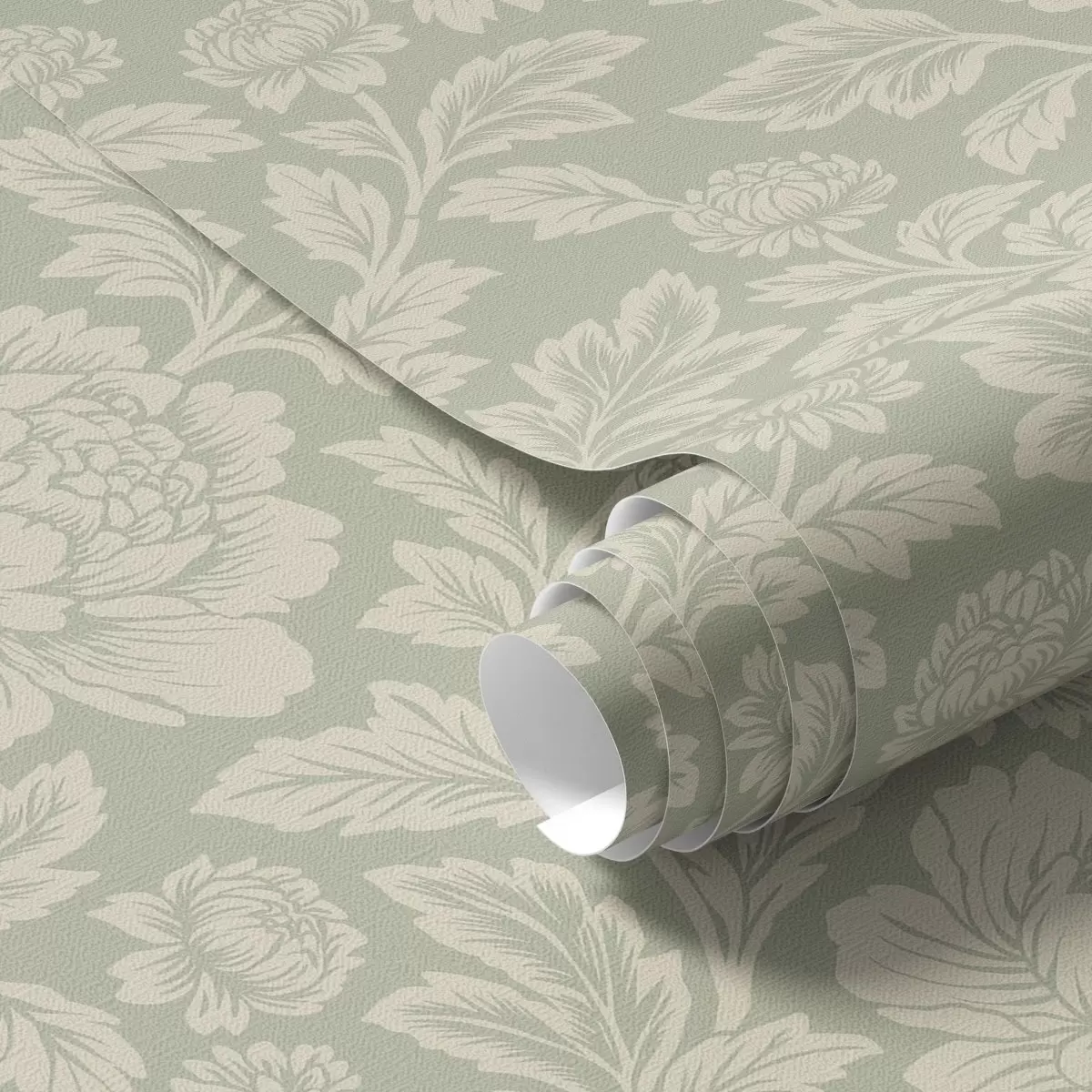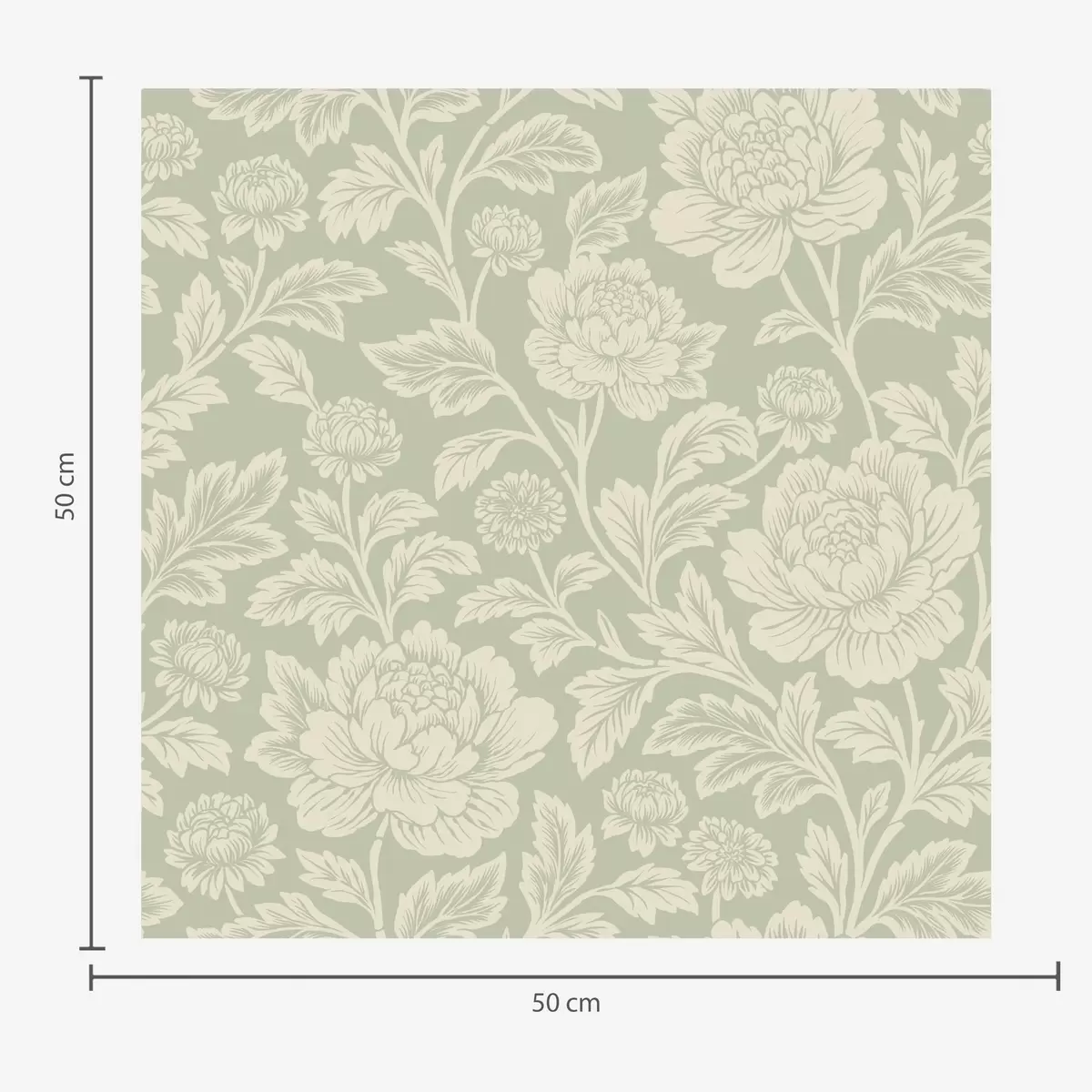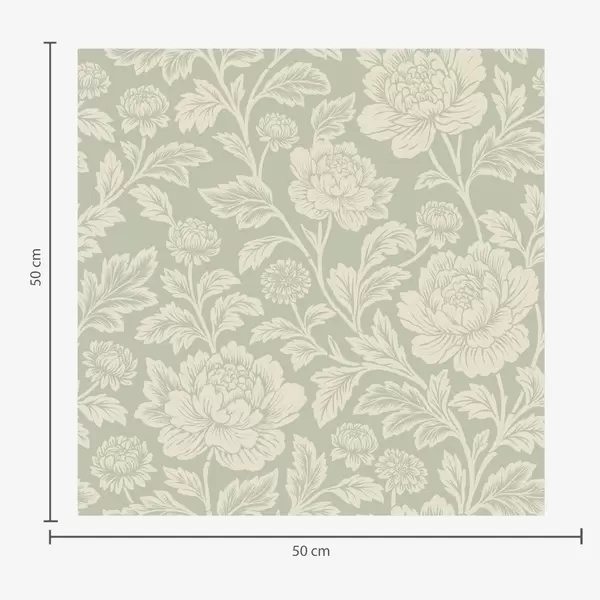 Tapetti Suuret viivapiirroksiset pionit salvia-taustalla Nr. a00582