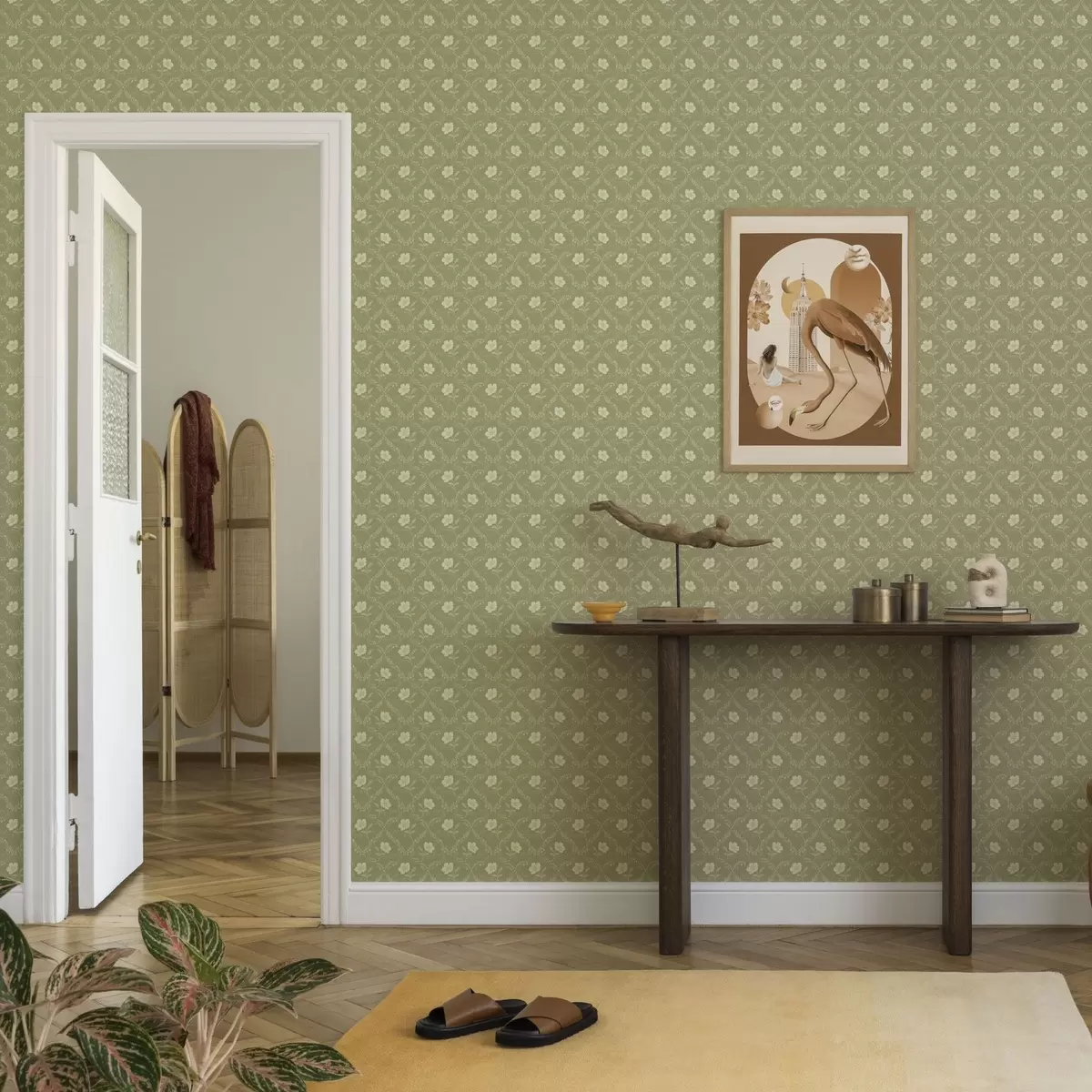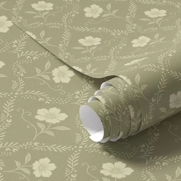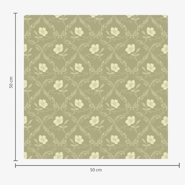 Tapetti Oliivipuu trellis kermanvärisillä kukilla, retrokoriste Nr. a00585