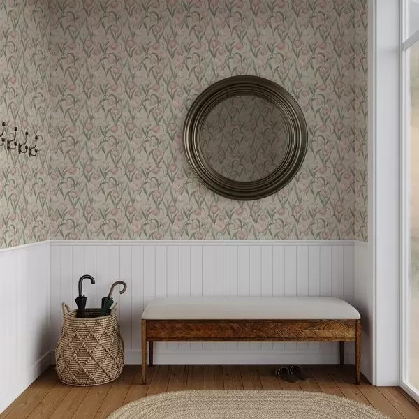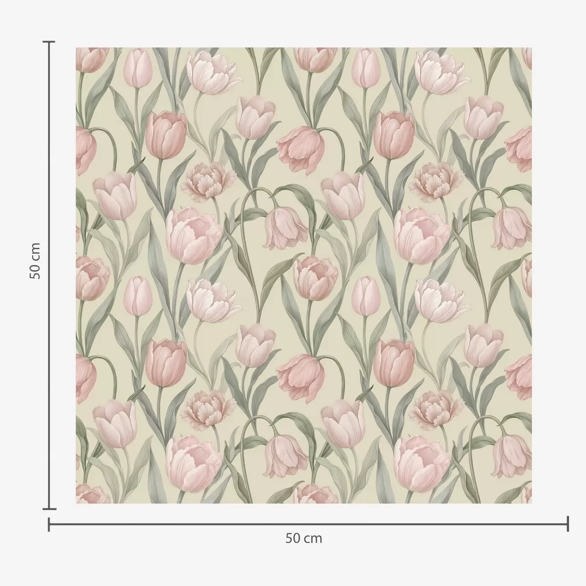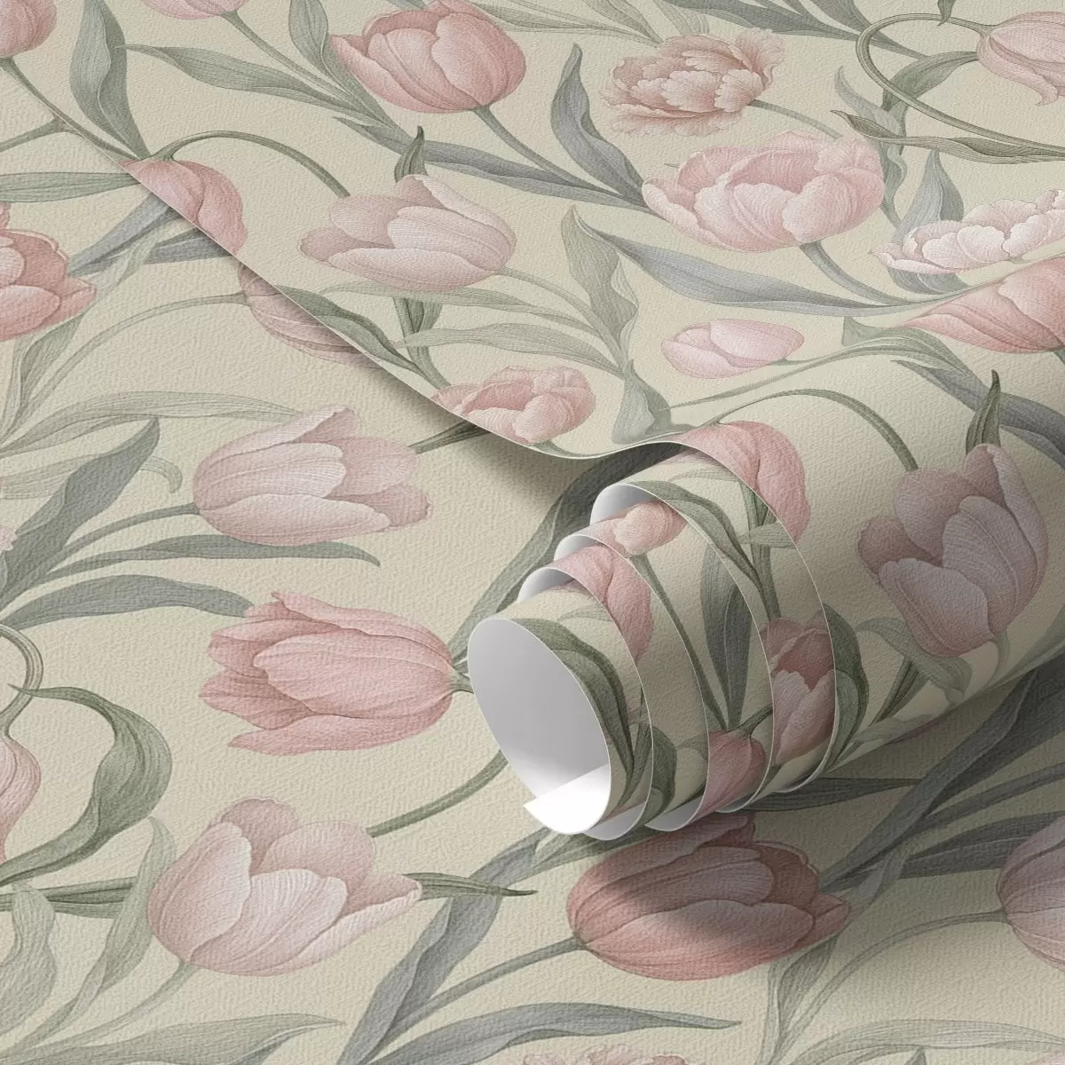 Tapetti Pehmeän vaaleanpunaiset tulppaanit lempeällä beige-taustalla Nr. a00589