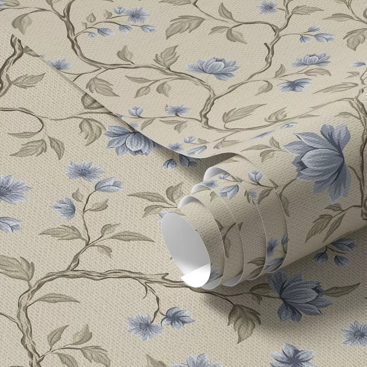 Tapetti Sinikukiset oksat pellavanbeigen taustalla Nr. a00590