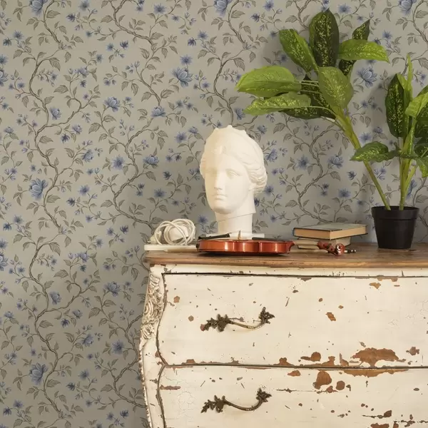 Tapetti Sinikukiset oksat pellavanbeigen taustalla Nr. a00590