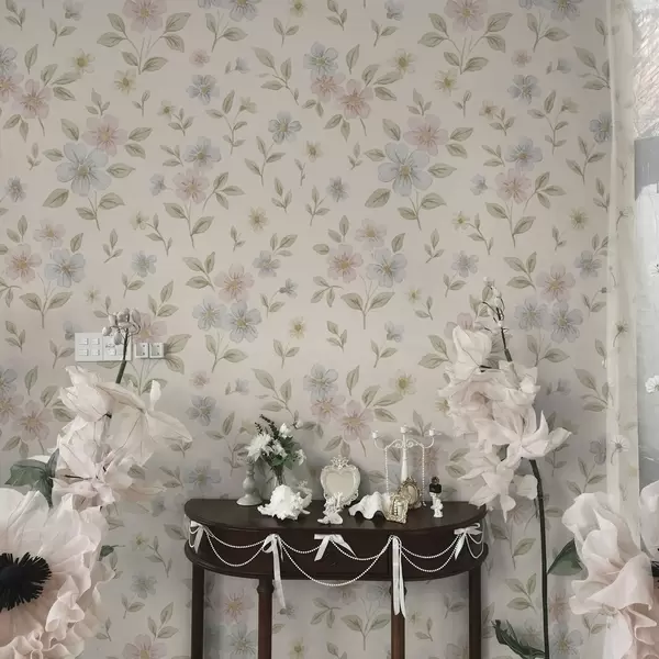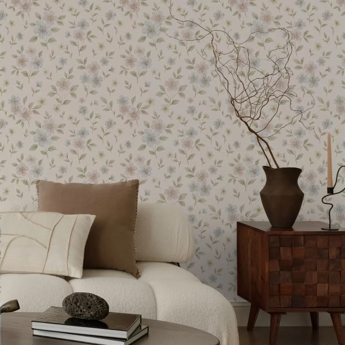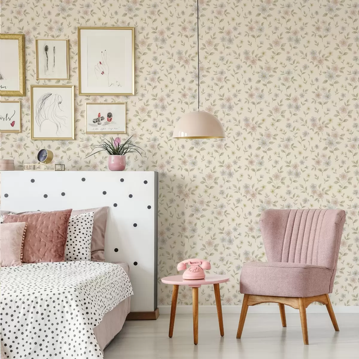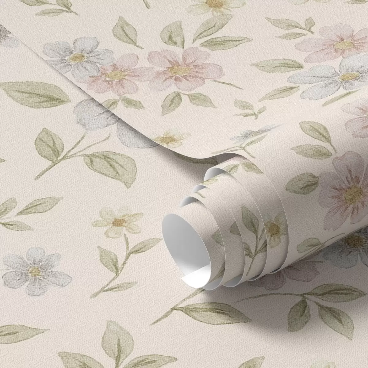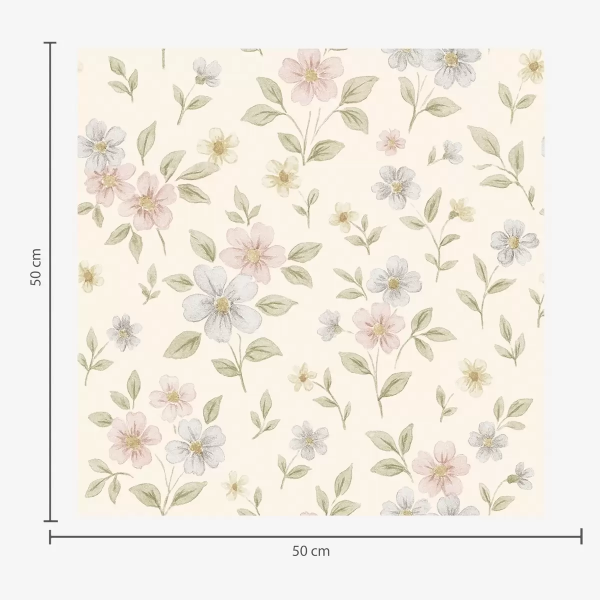 Tapetti Pastelliväriset niittykukat kermanvärisellä taustalla Nr. a00596