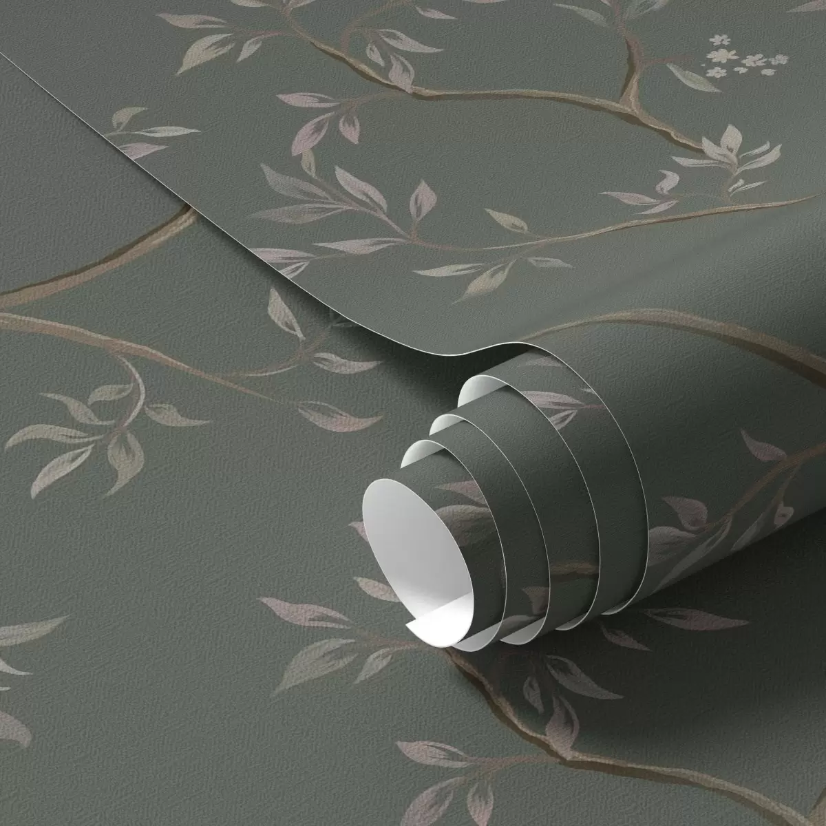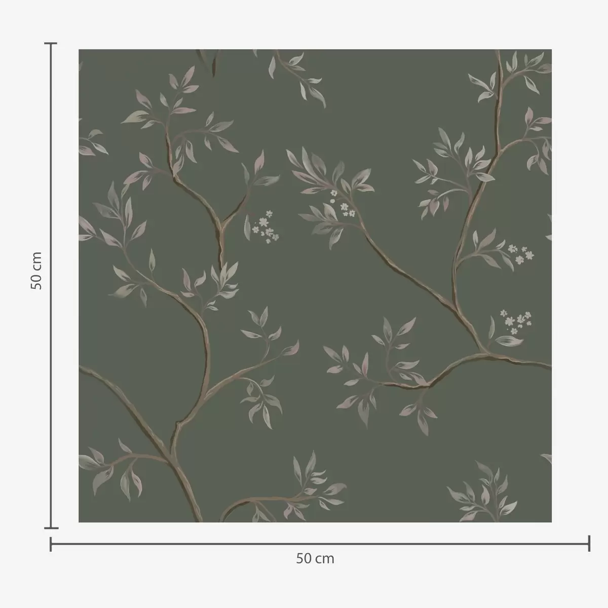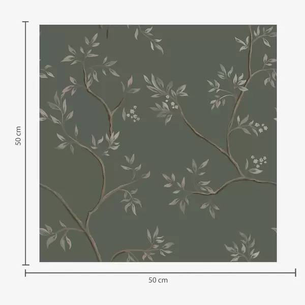 Tapetti Hienostuneet lehtiset oksat tummanvihreällä taustalla Nr. a00597
