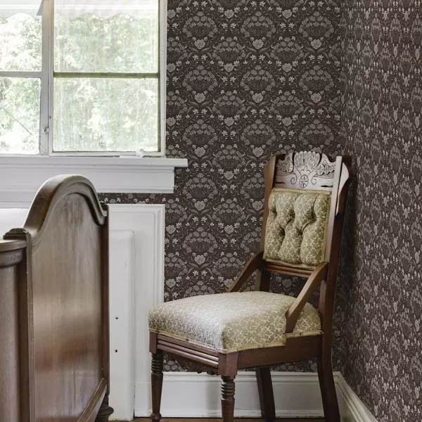 Tapetti Tumma suklaa, damaski, pionit ja lumikellot Nr. a00603v2