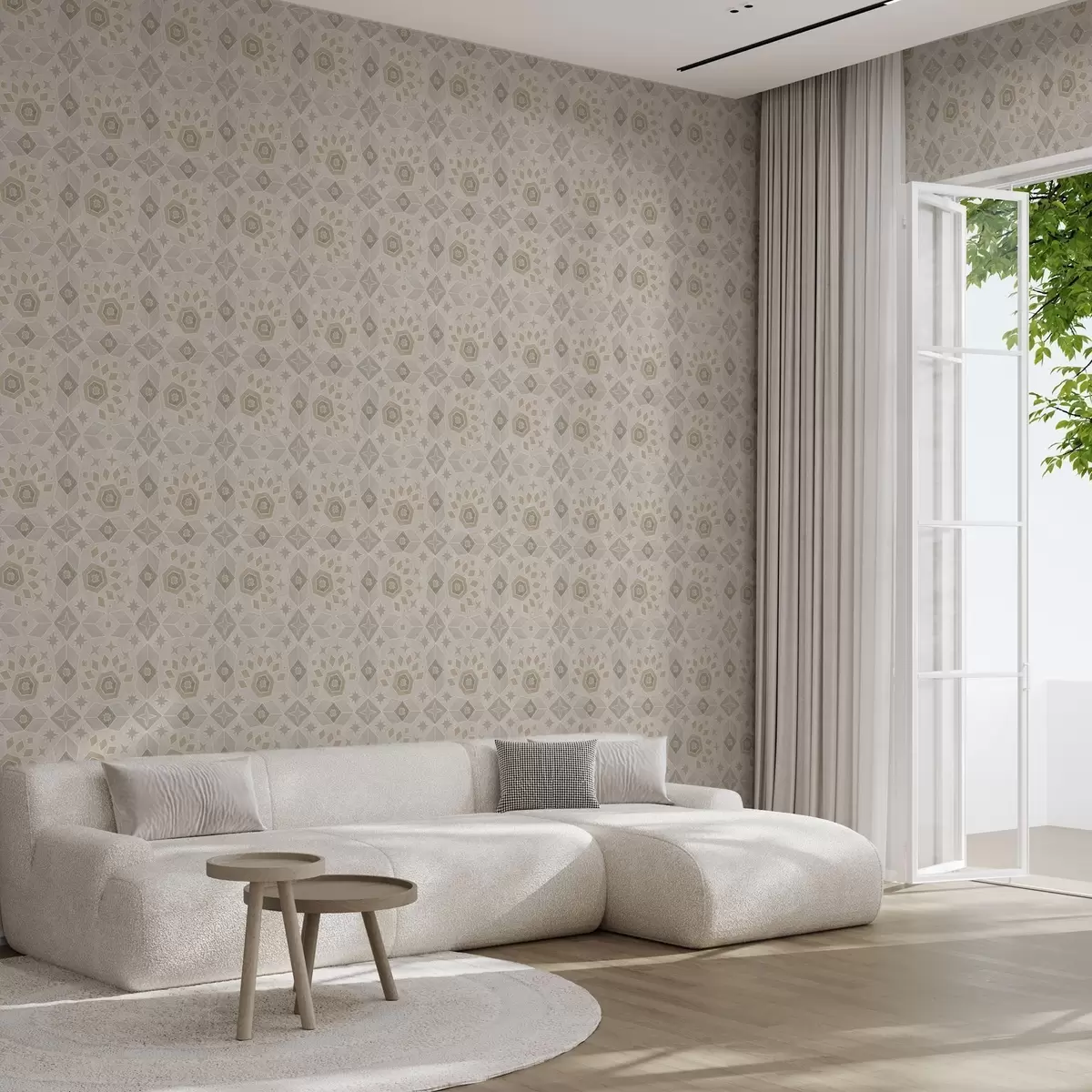 Tapetti Geometrinen mosaiikkikuvio lämpimissä beigeissä sävyissä Nr. a00606