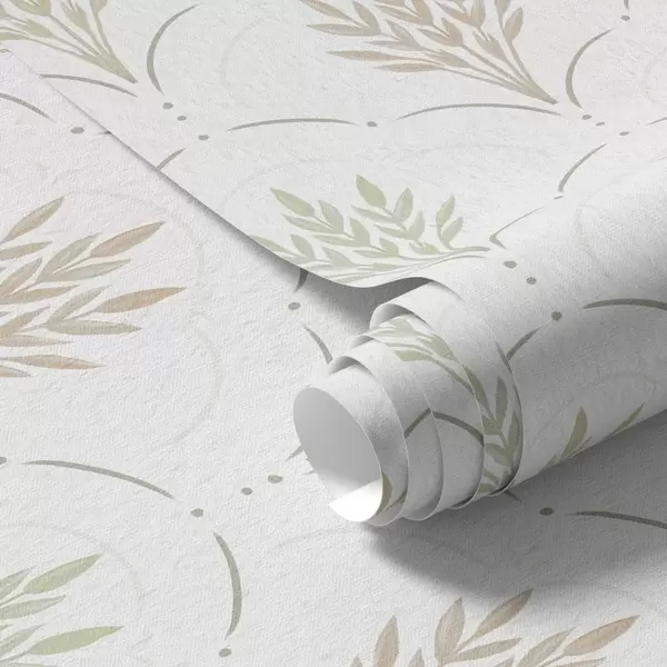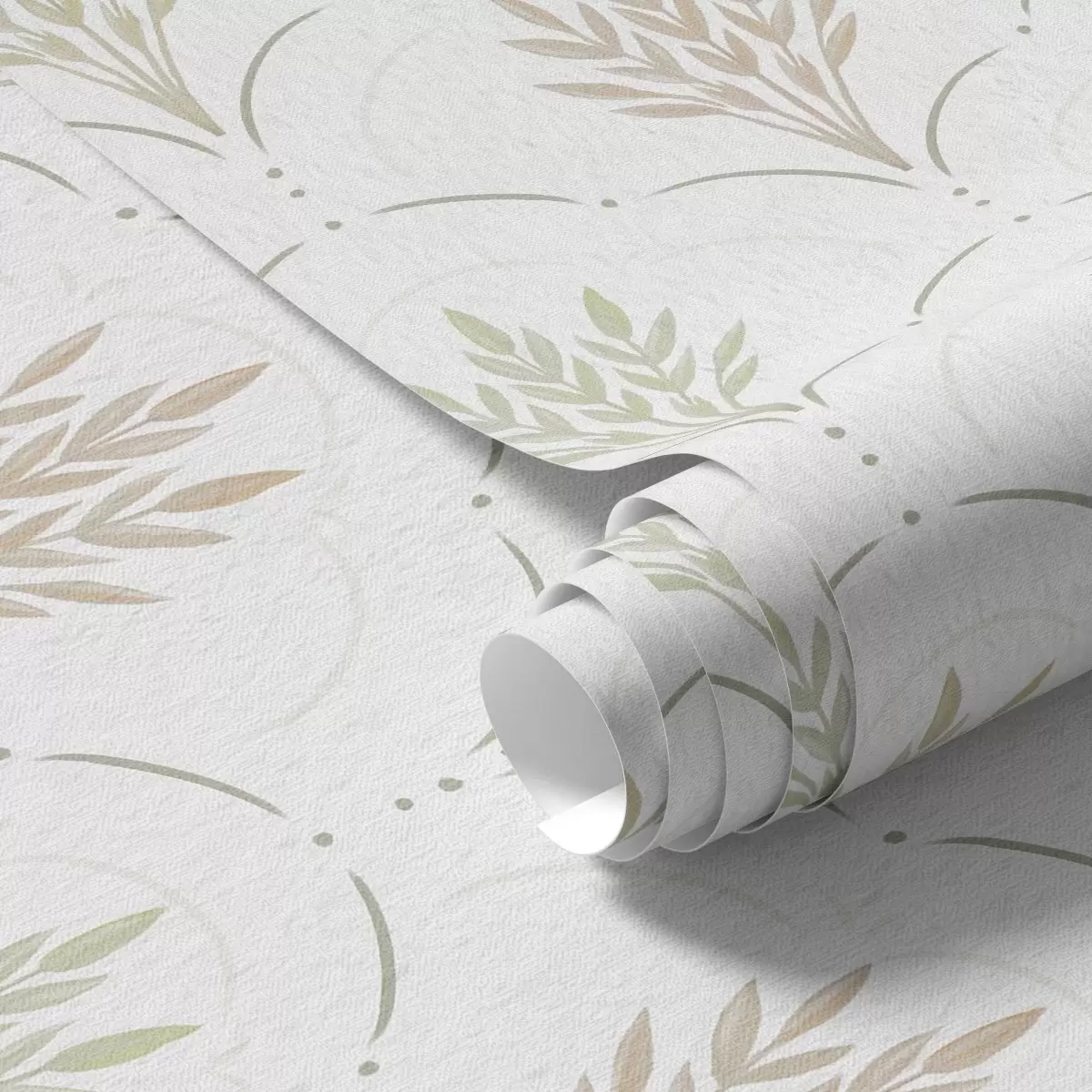 Tapetti Vehnä kaarevassa koristeessa, pehmeät pastellivärit valkoisella pohjalla Nr. a00607v1