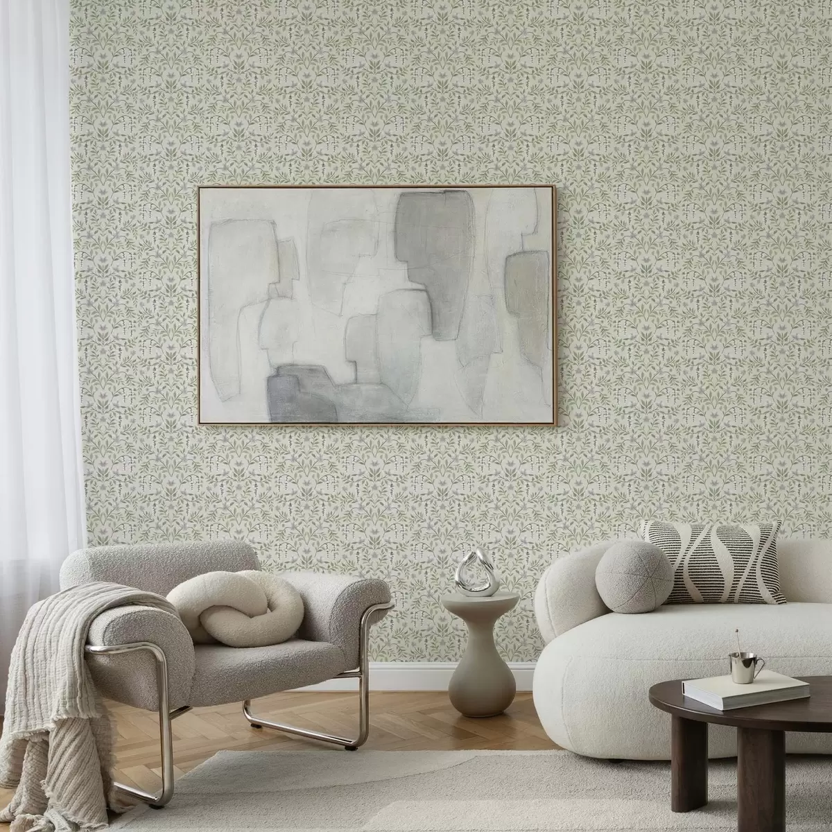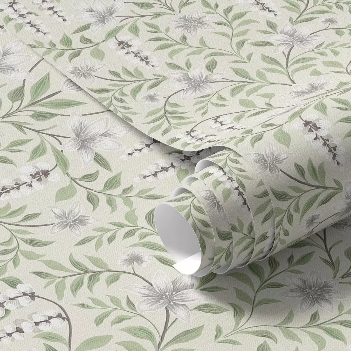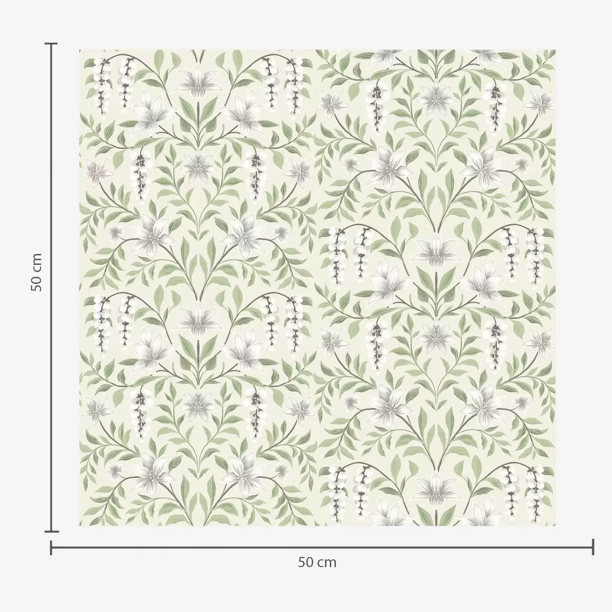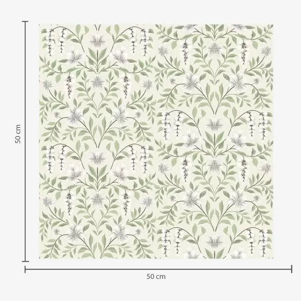 Tapetti Kevyt viiniköynnösornamentti valkoisilla kukilla, symmetrinen Nr. a00609