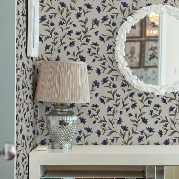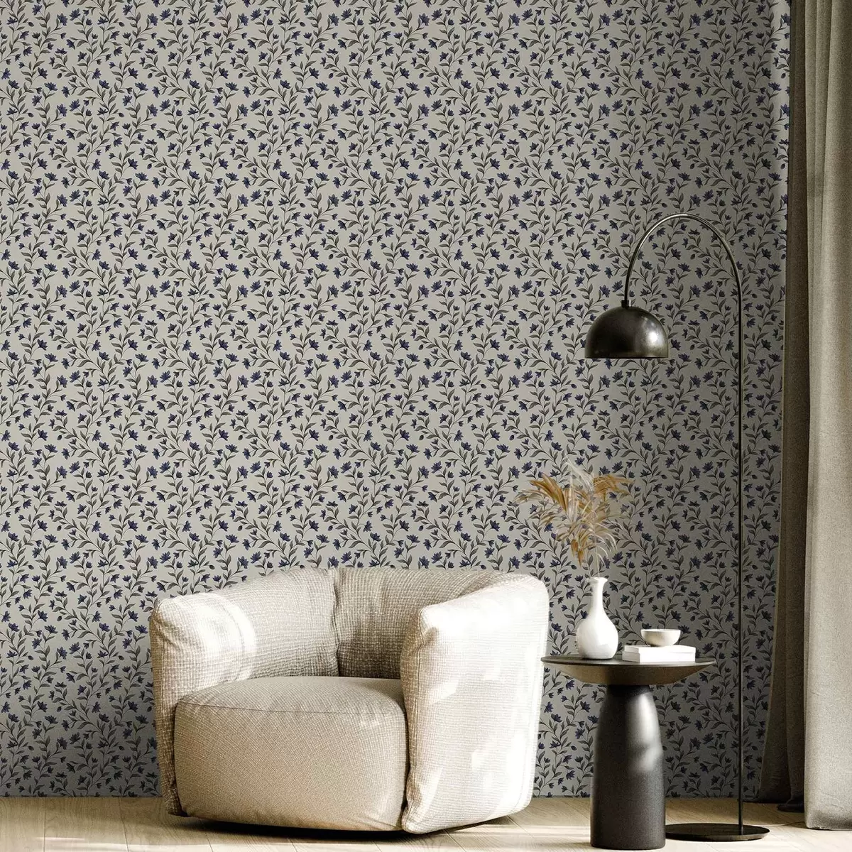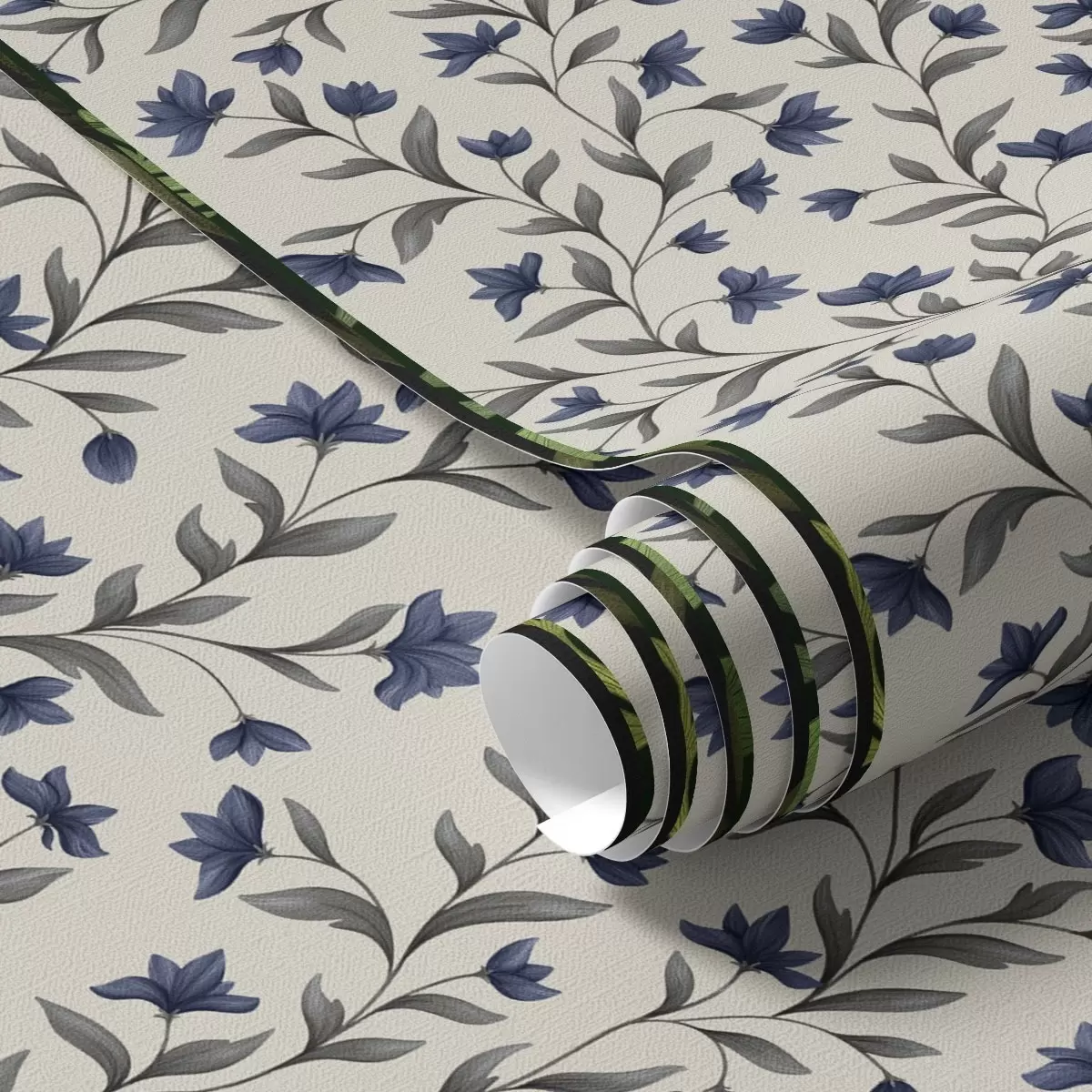 Tapetti Sinikellot ja harmaa vehreys vaalealla taustalla Nr. a00622v1