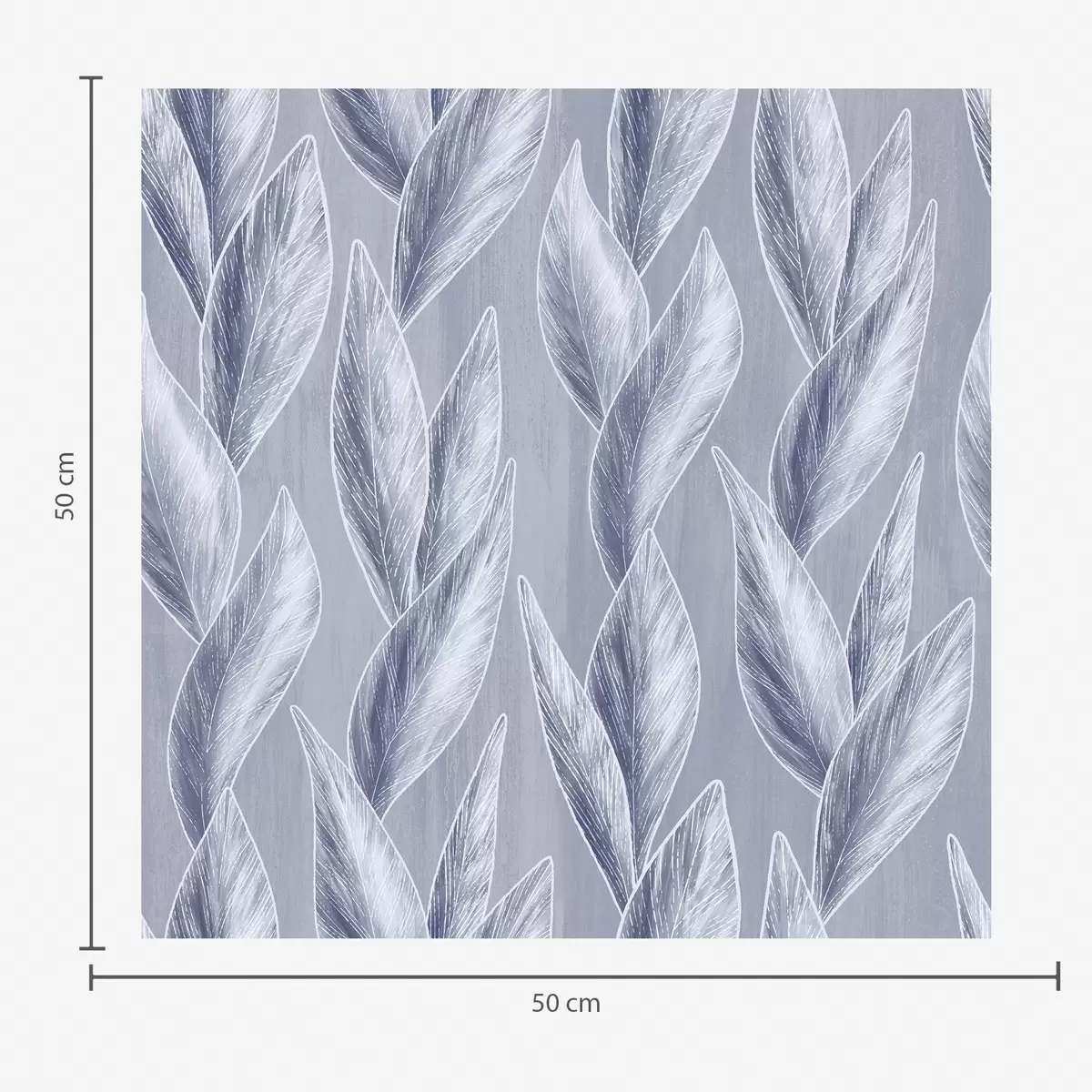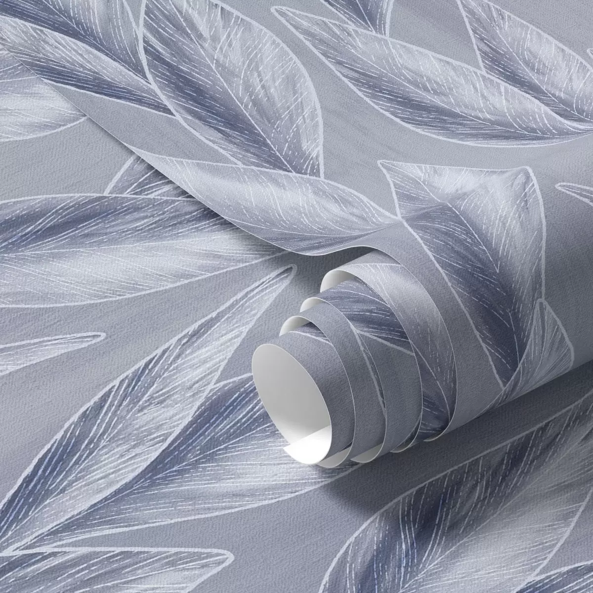 Tapetti Hopeansiniset lehdet harmaansinisellä taustalla, graafinen kuvio Nr. a00627