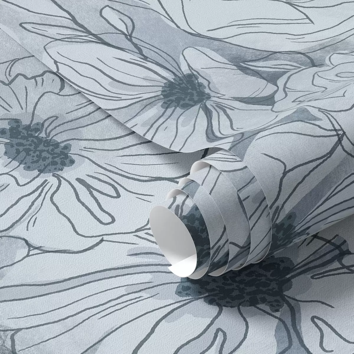 Tapetti Lineaariset kukat viileässä harmaansinisessä värimaailmassa Nr. a00636v2