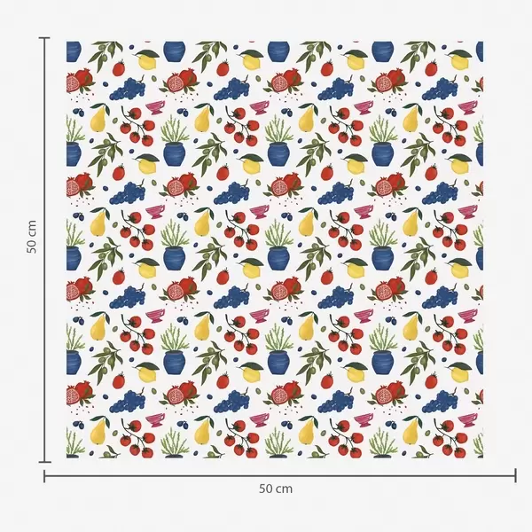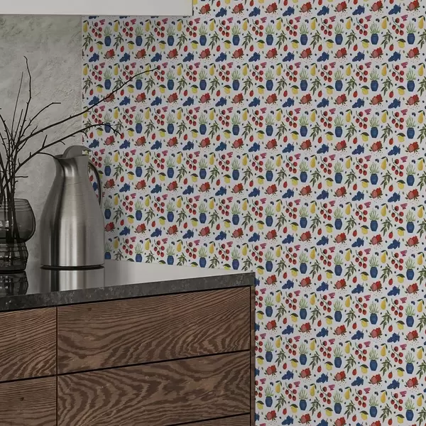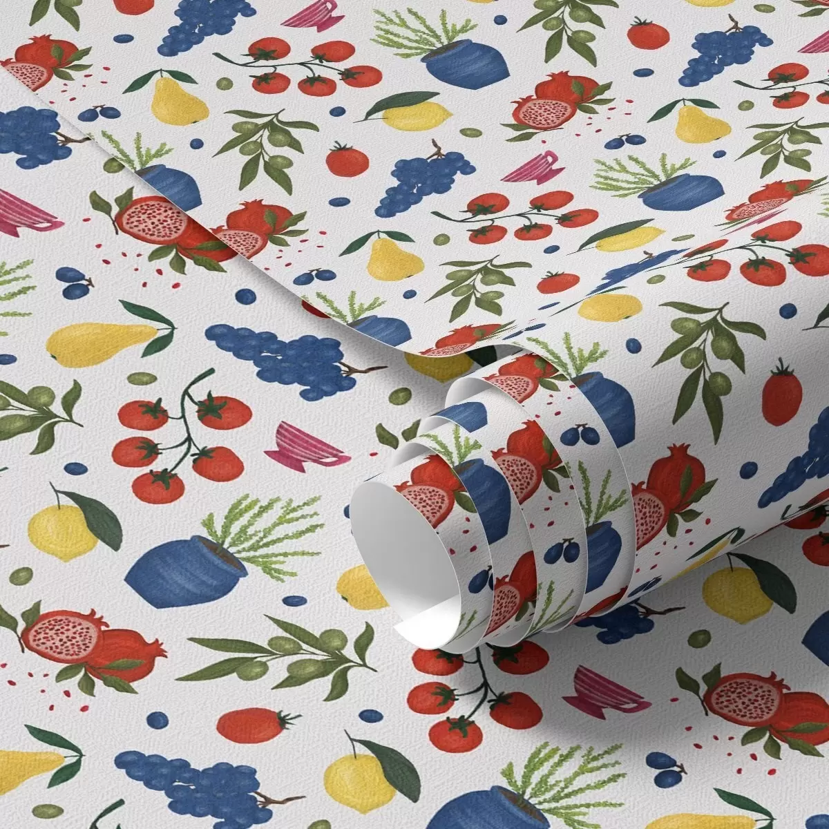 Tapetti Kirkas hedelmä-kasvitieteellinen kuvio valkoisella taustalla Nr. a00637v1