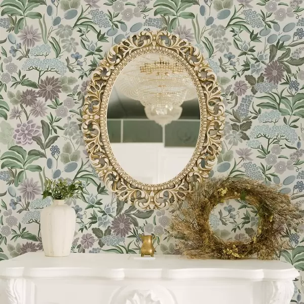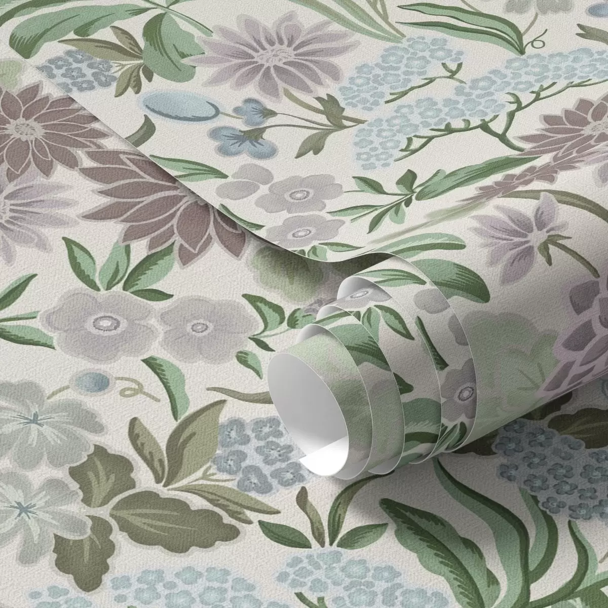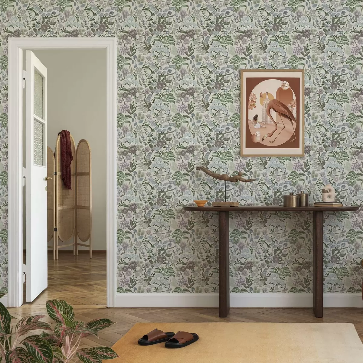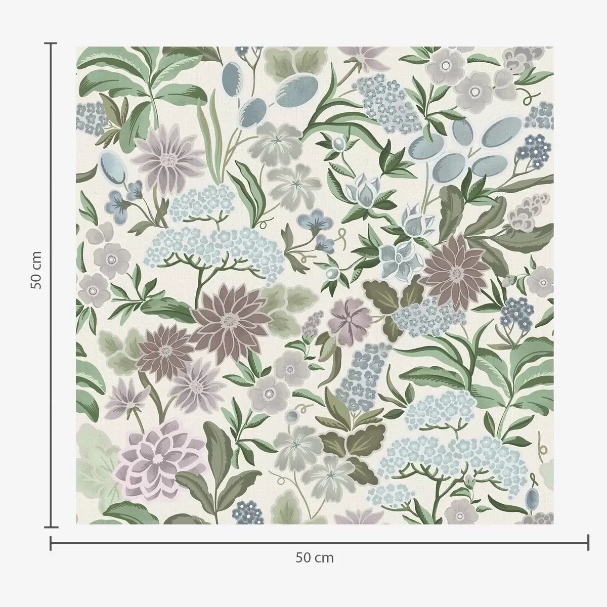 Tapetti Pastellivärit kukat ja lehdet mintunsinisessä värimaailmassa Nr. a00642