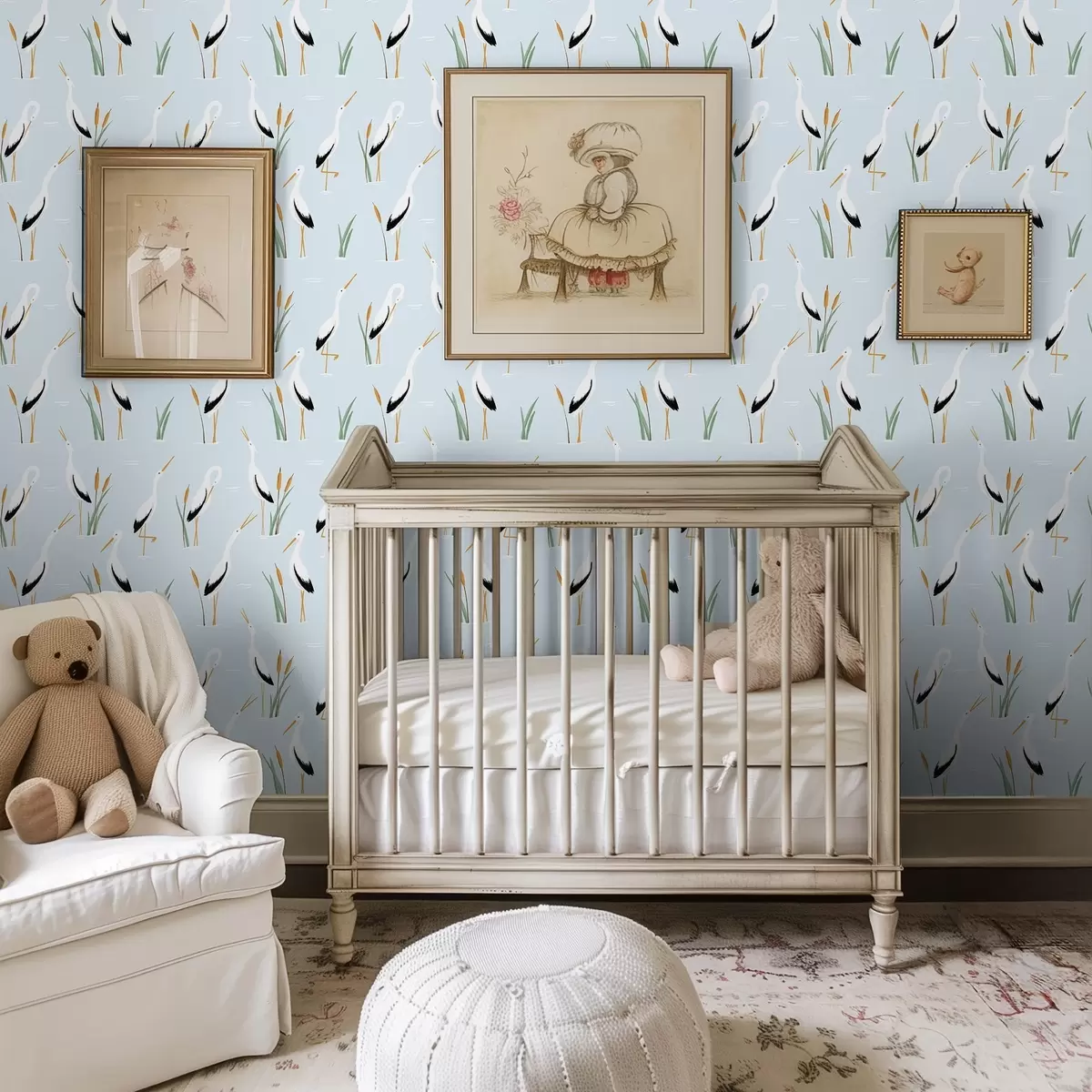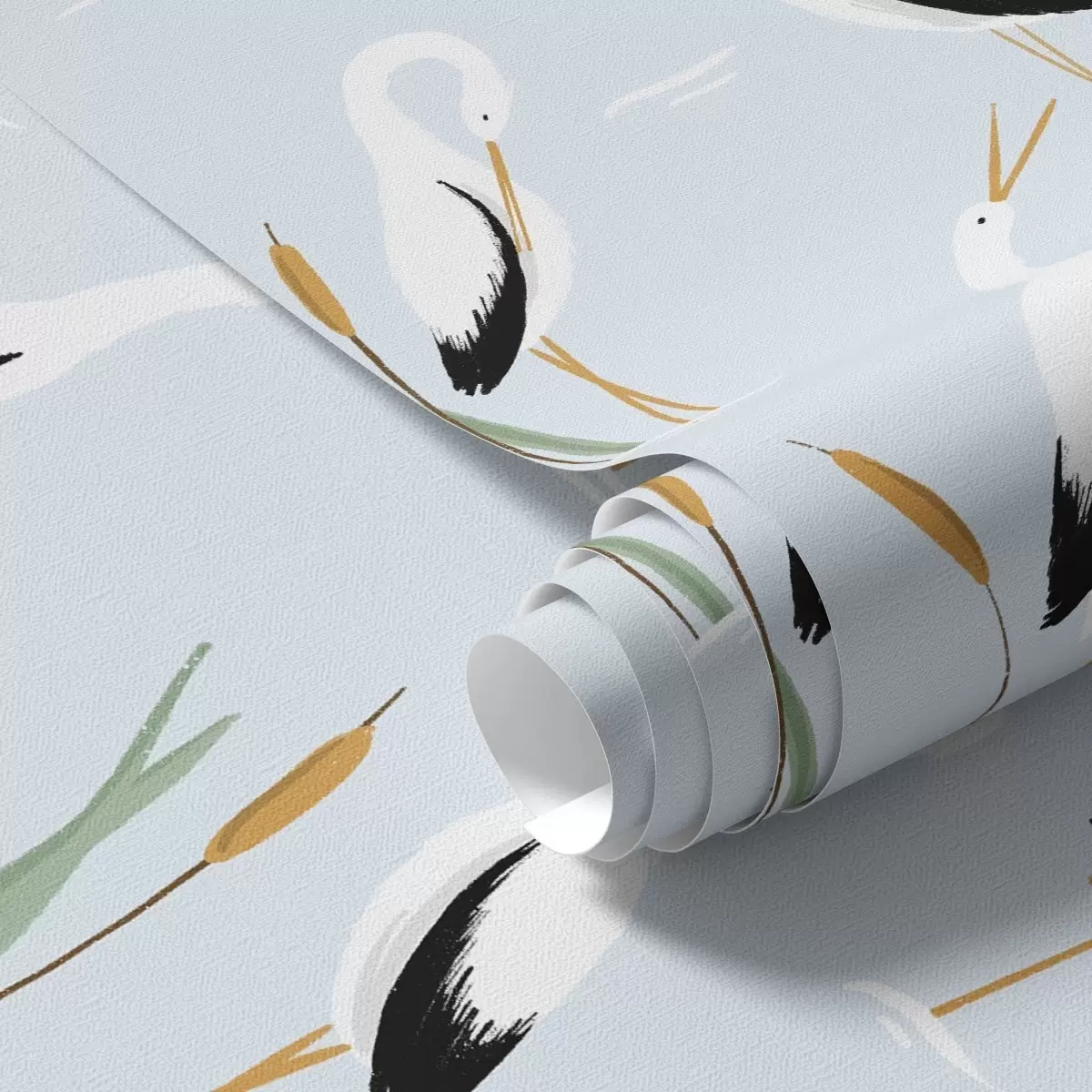 Tapetti Sorsia ruovikossa lempeän sinisellä taustalla Nr. a00650v3